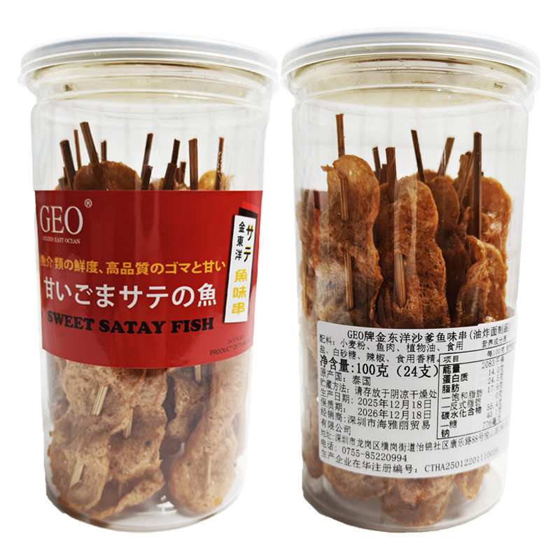 泰国进口GEO金东洋沙爹鱼串罐装甜辣鱼味童年回忆经典鱼片小零食
