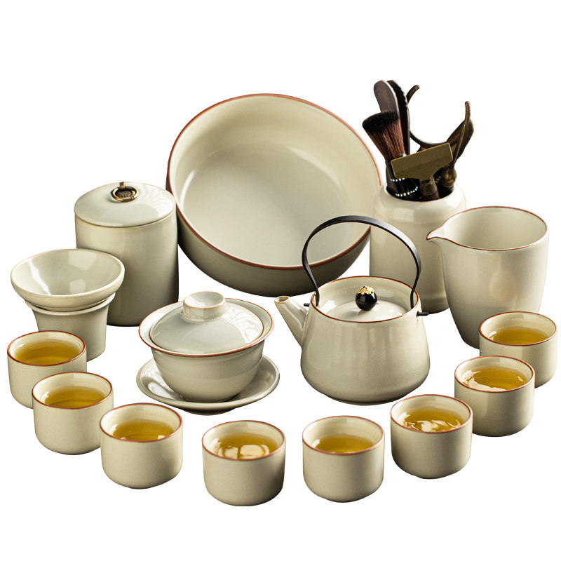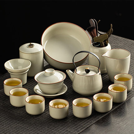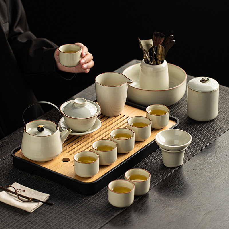 米黄汝窑功夫茶具套装2026新款喝茶家用泡茶陶瓷盖碗茶壶茶杯套装
