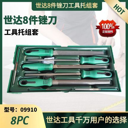 世达09910世达8件锉刀组套世达锉刀工具托8中齿扁铲三角锉刀套装