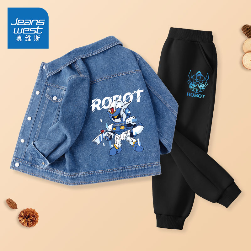 真维斯童装儿童秋季套装男童春秋款牛仔夹克男大童休闲秋装两件套