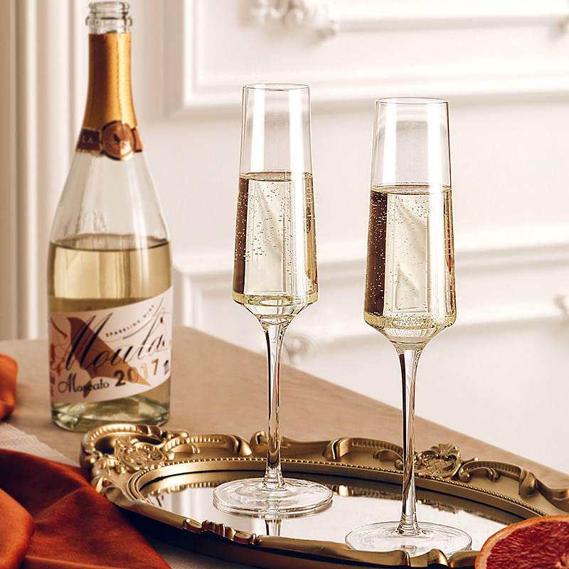 水晶香槟杯高脚杯6只套装一对家用结婚玻璃红酒杯起泡甜酒杯酒具