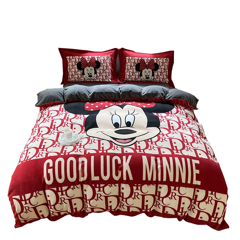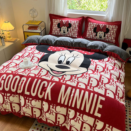 迪士尼卡通米妮牛奶绒四件套双面珊瑚绒加厚法兰绒被套床笠冬季款