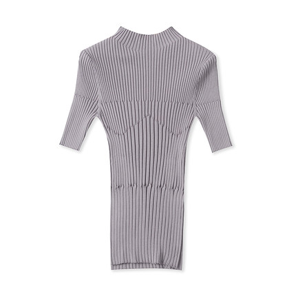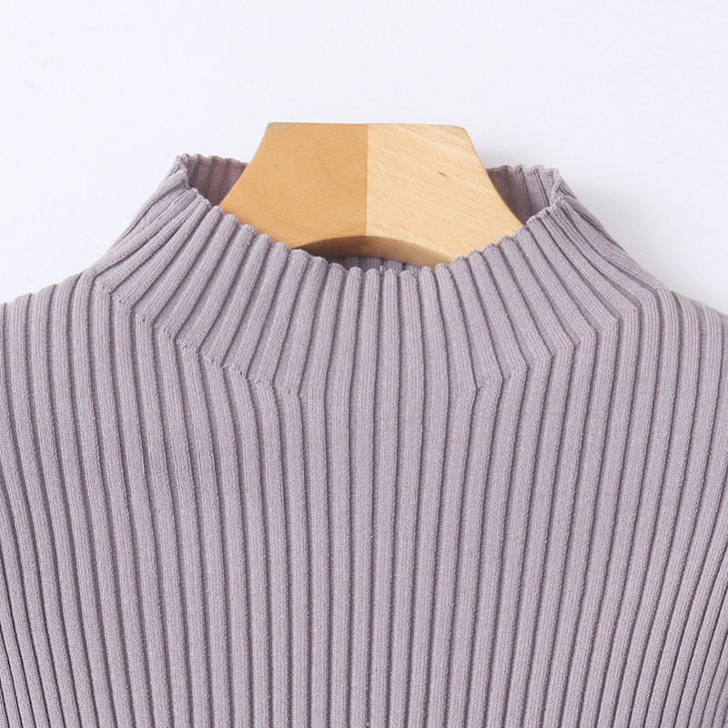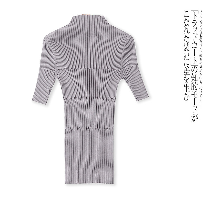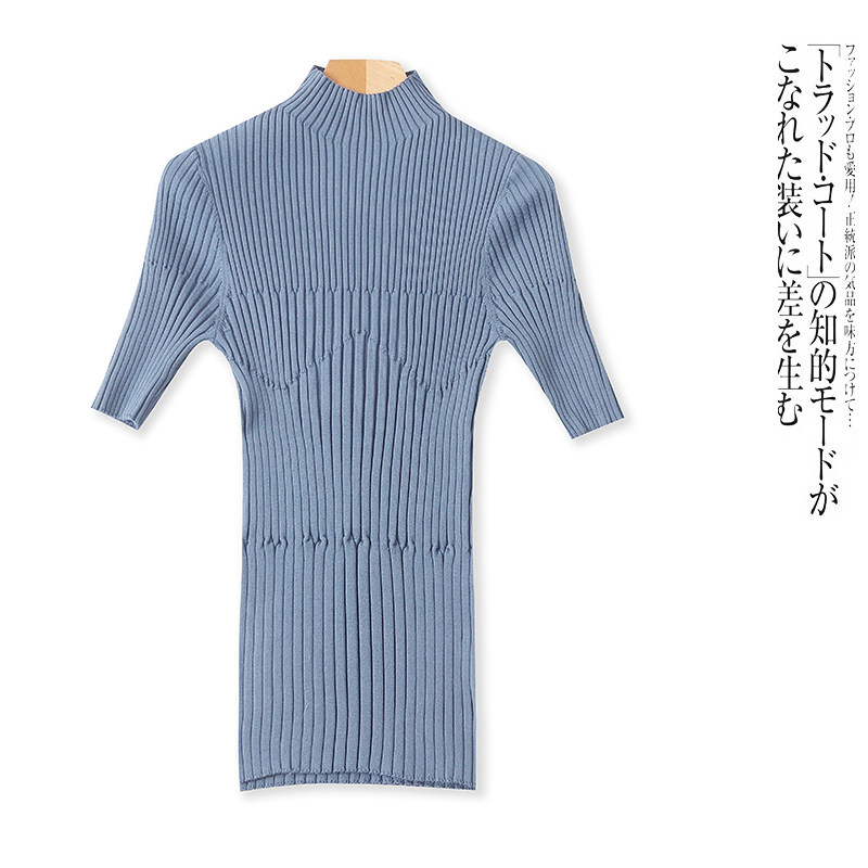 D4544外贸欧美单女士针织衫新款半高领套头五分袖弹力修身线衫