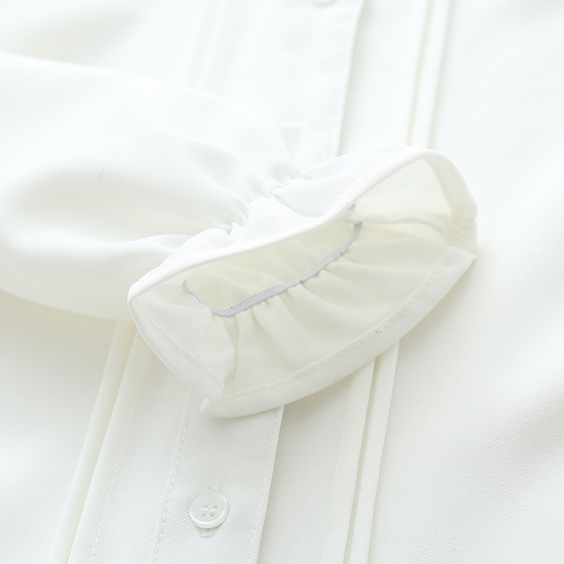 梦箱子2025春新款日系甜美荷叶边娃娃领风琴褶长袖修身百搭白衬衫