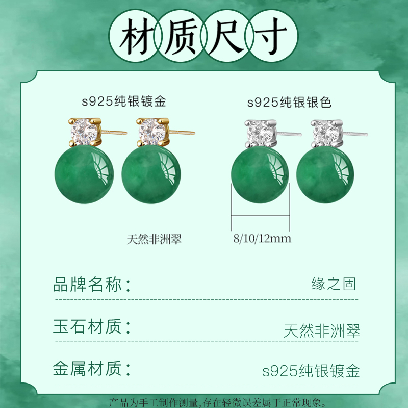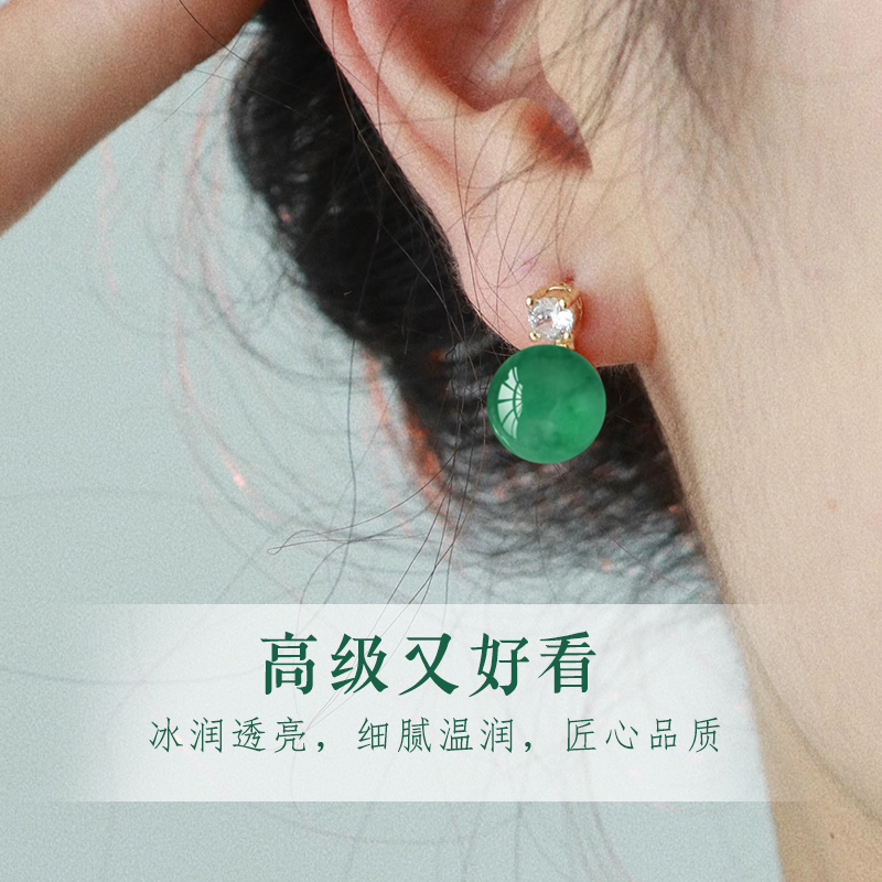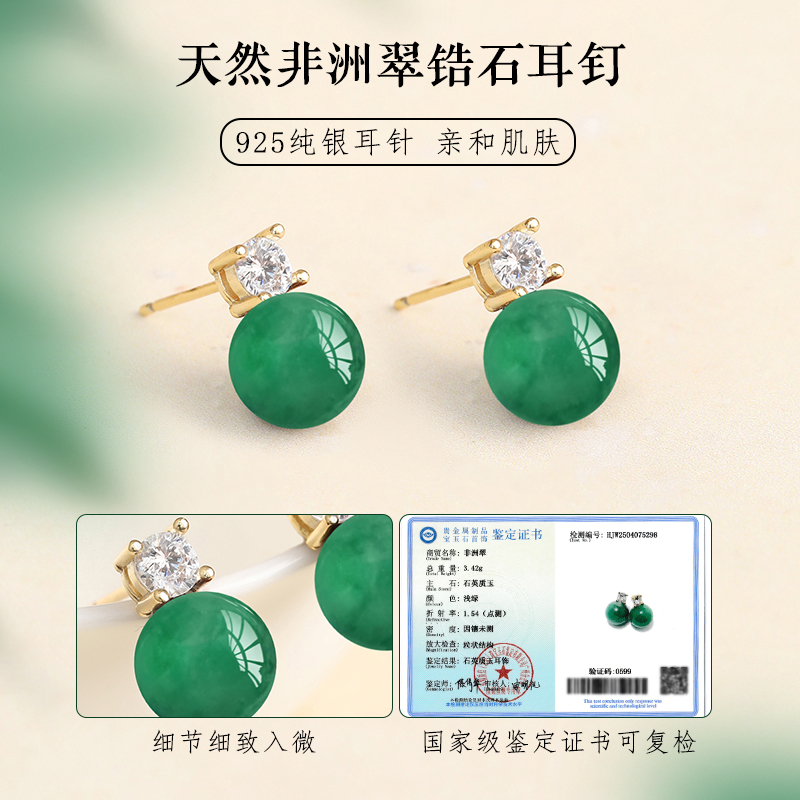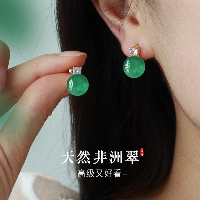 天然非洲翠耳钉女纯银钻石小众耳坠翡翠玉石轻奢高级感气质小耳环