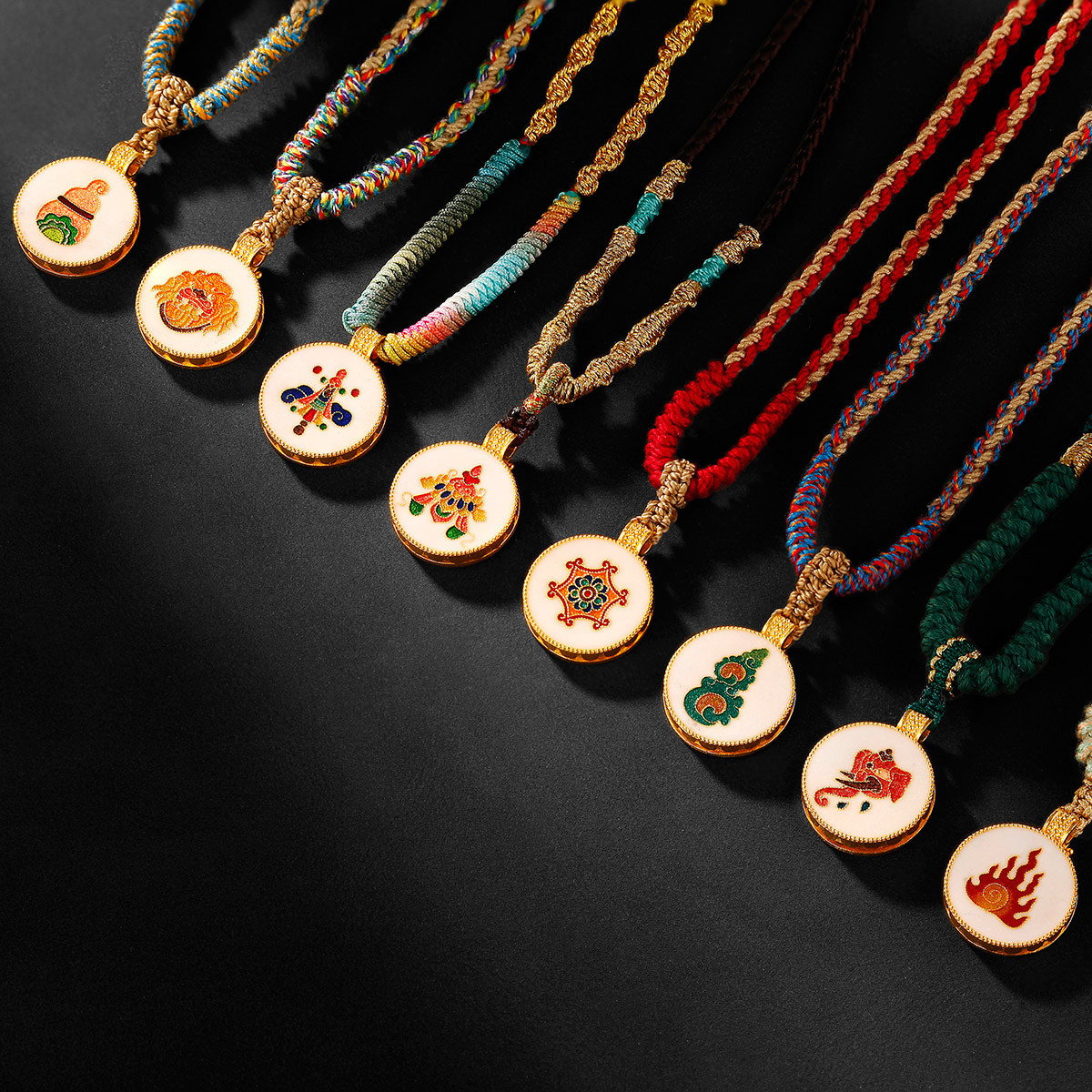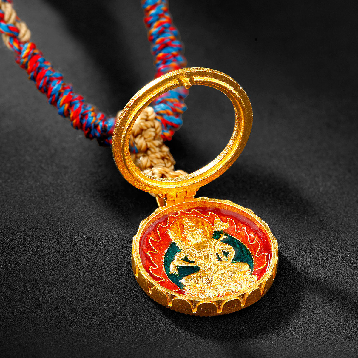 吉盟珠宝古法黄金吊坠女生肖八大守护神999足金烧蓝项链绳新中式