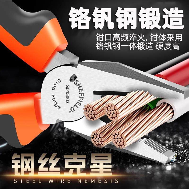钢盾钢丝钳多功能万用老虎钳子手钳子电工专用家用工具断线平口钳