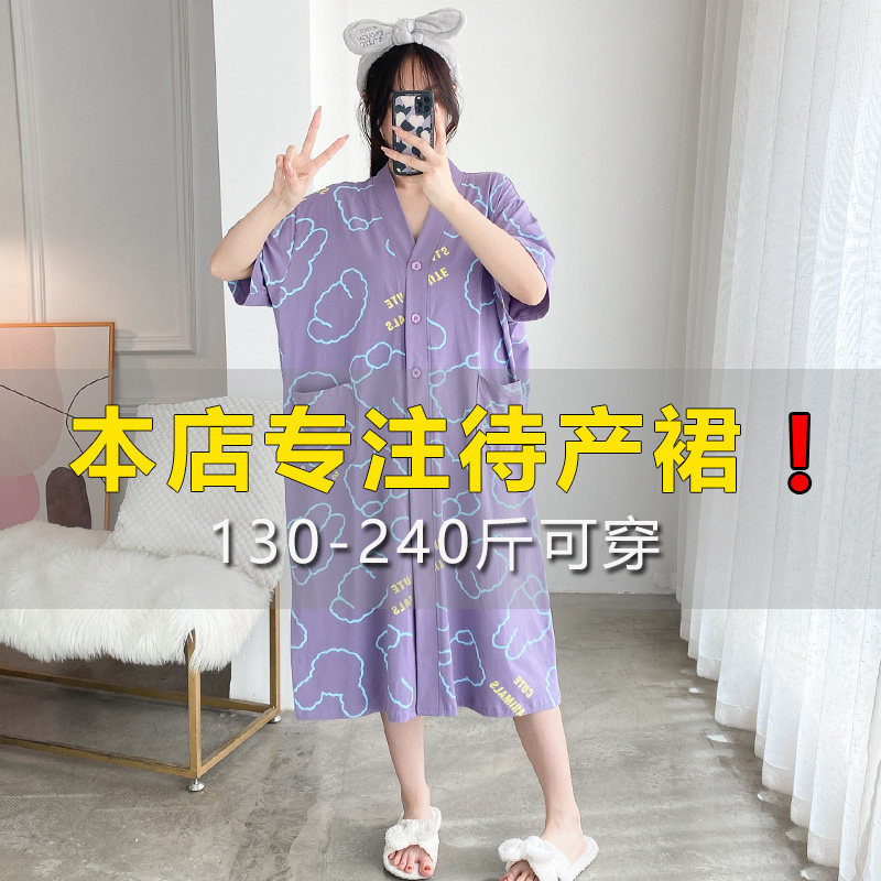 夏季胖女孩大码睡裙纯棉哺乳睡衣连衣裙短袖孕妇待产裙夏女200斤