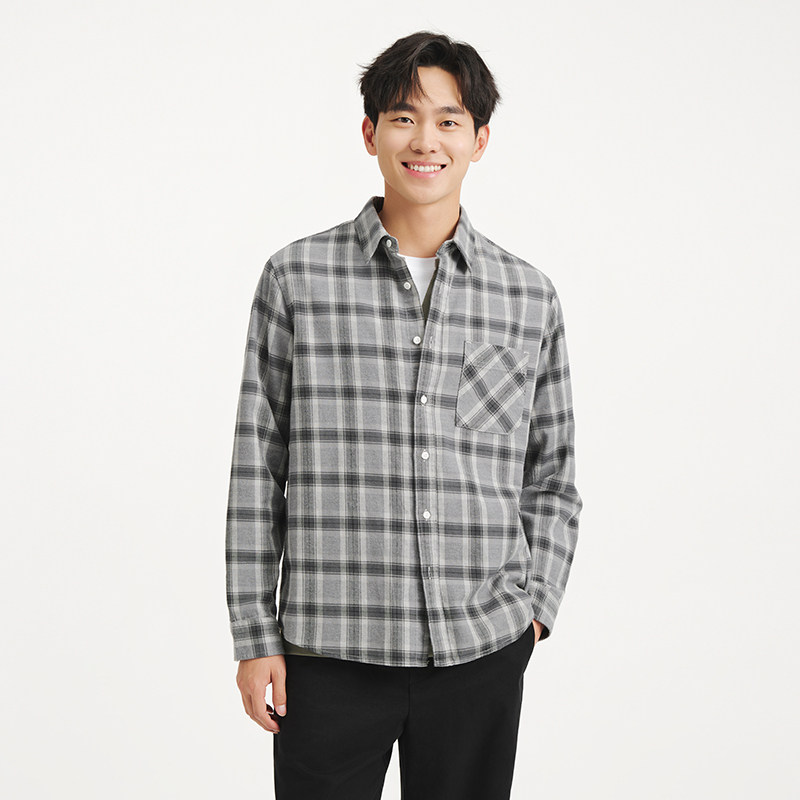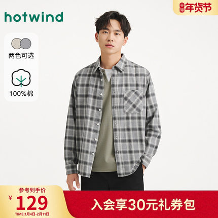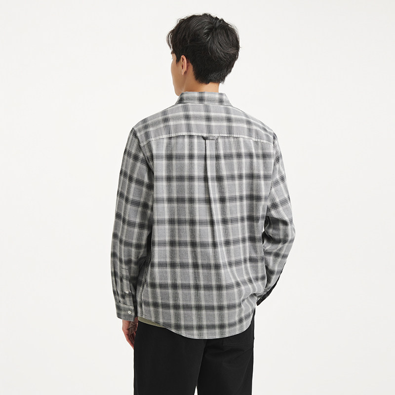 热风男士长袖格子衬衫2025年秋季新款经典格纹宽松棉内搭上衣外套