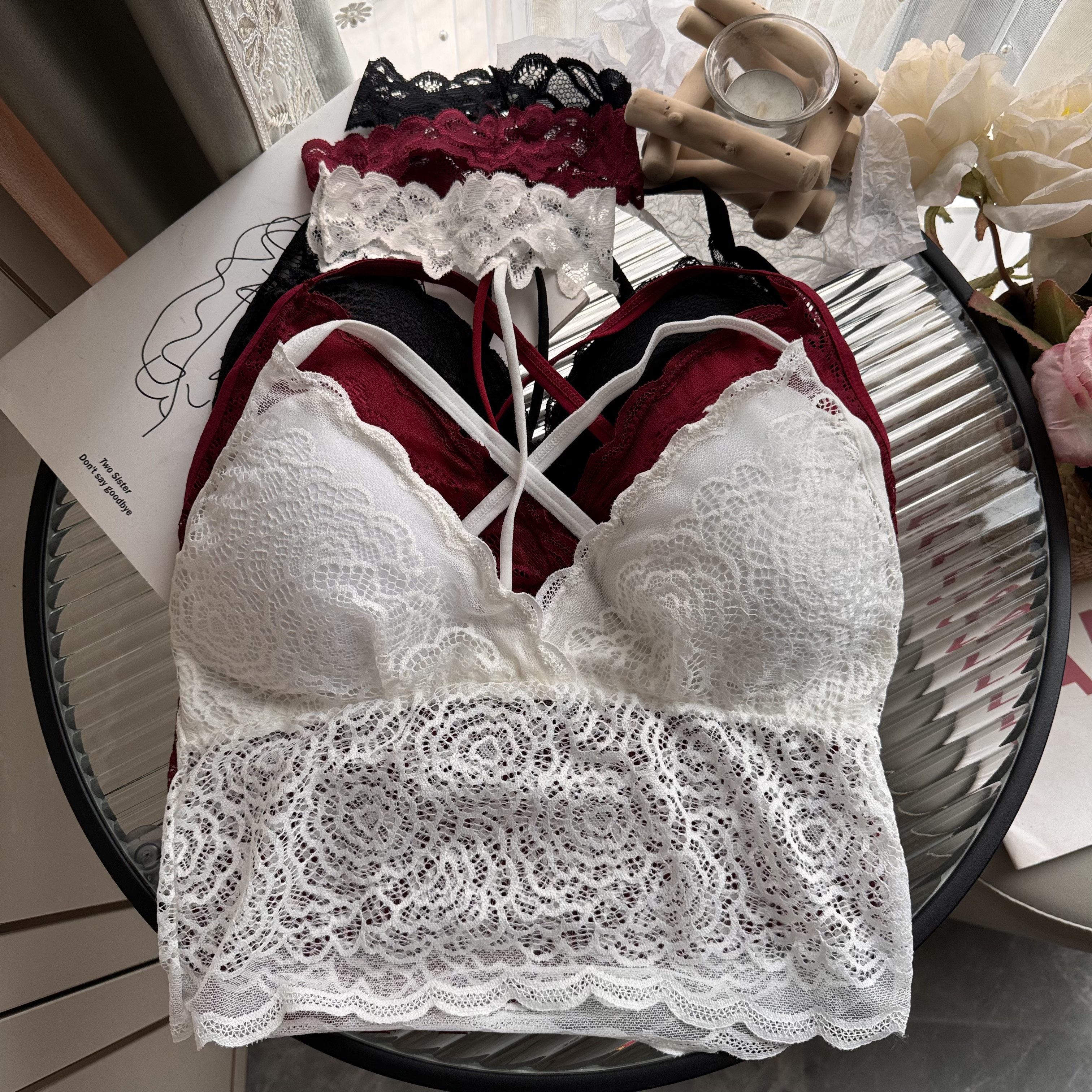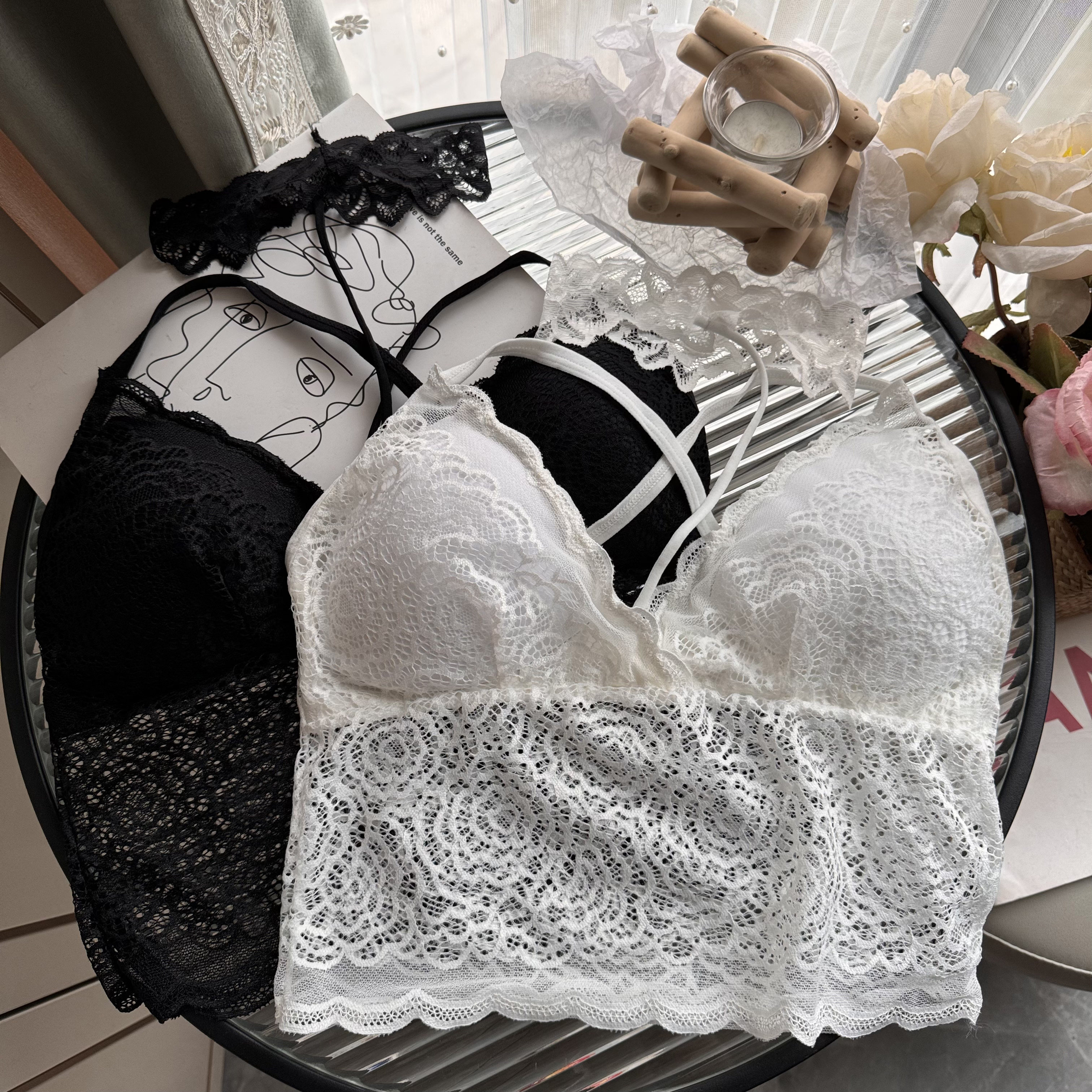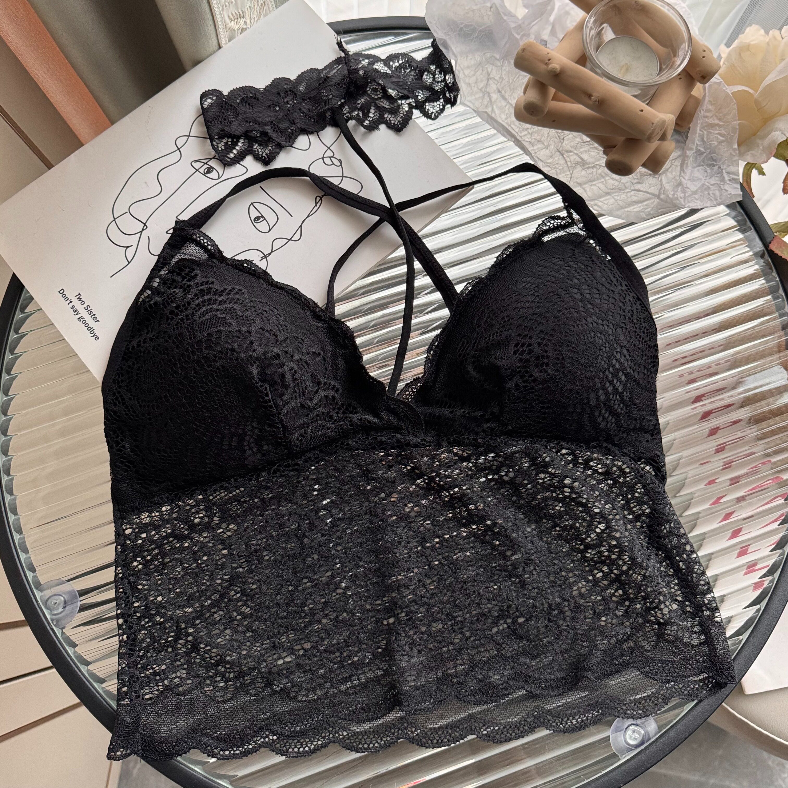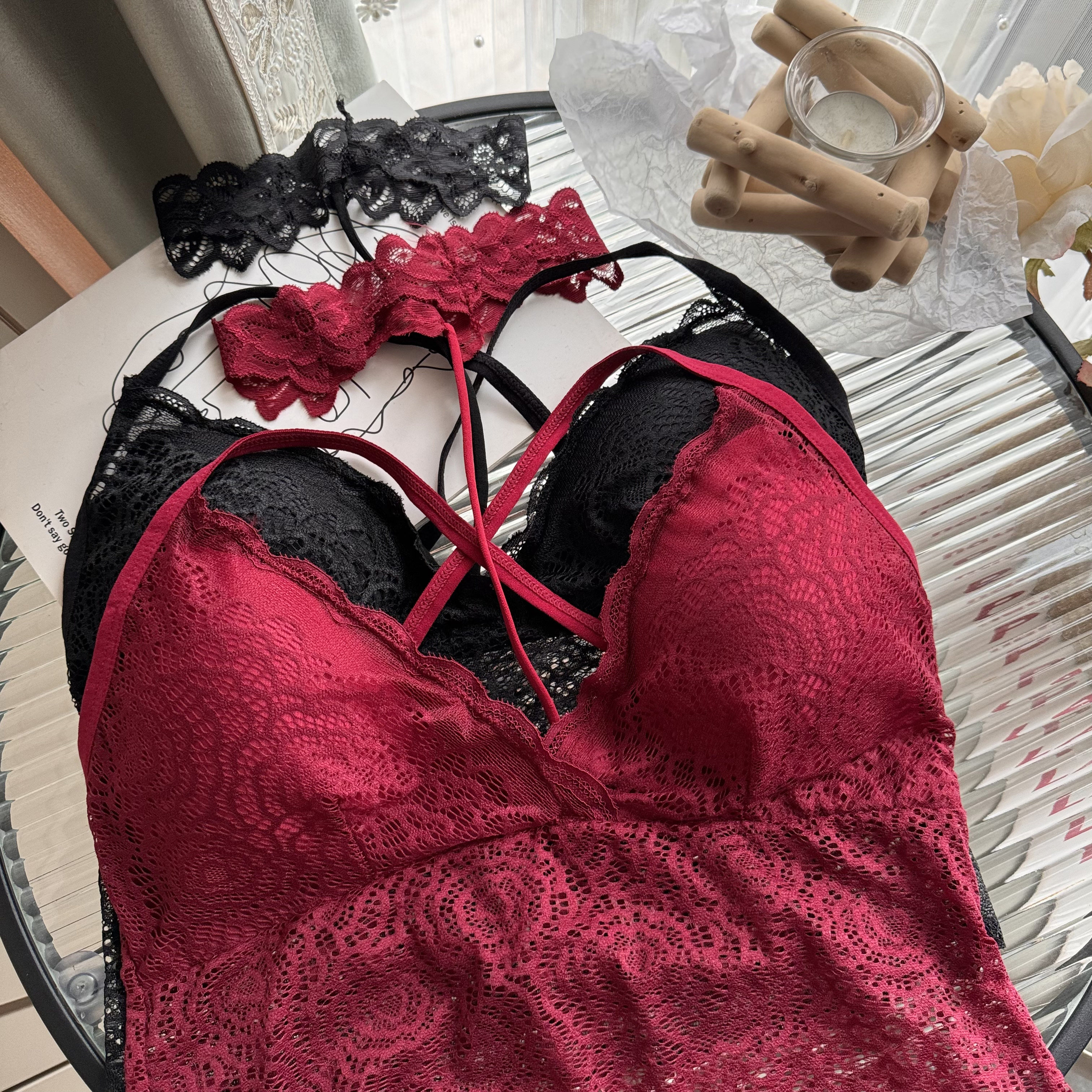 大码女装胖妹妹性感蕾丝裹胸无钢圈挂脖少女文胸内衣吊带小背心女