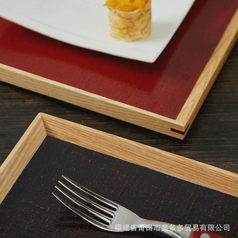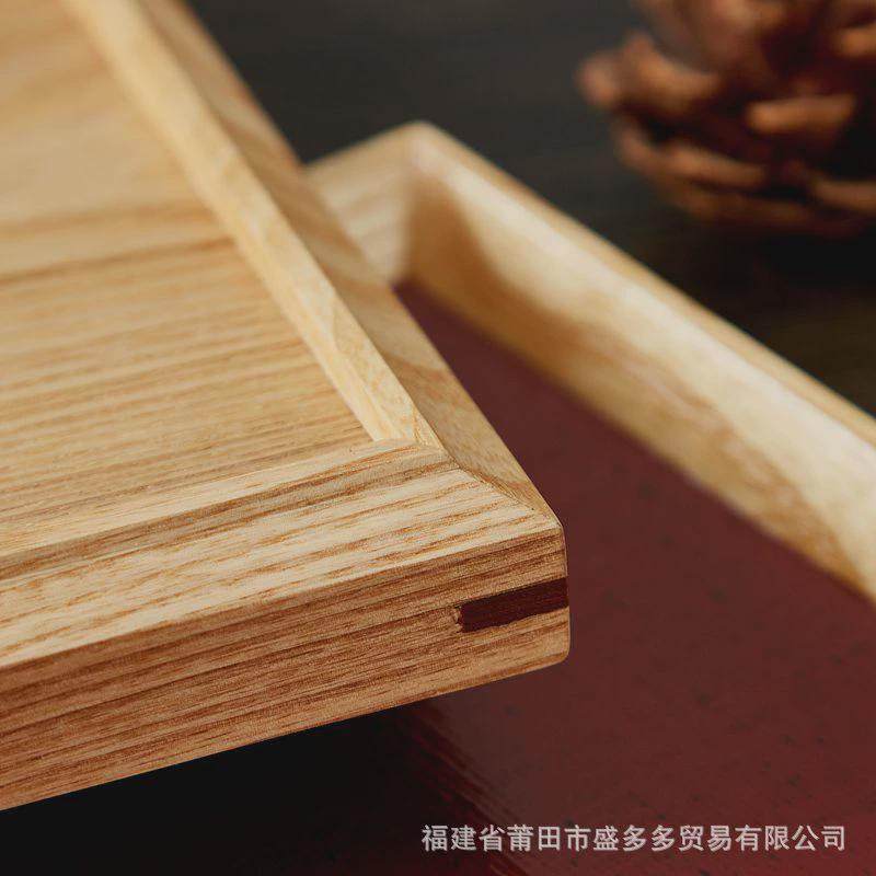 简约创意木质彩色托盘日式红色实C木盘子防滑果盘木制餐盘木茶盘