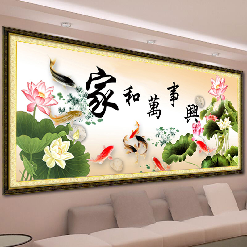 5d钻石画满钻家和万事兴点贴砖石十字绣九鱼图2026新款客厅中国风