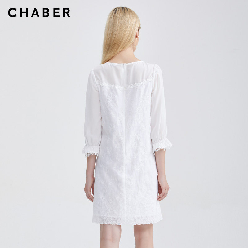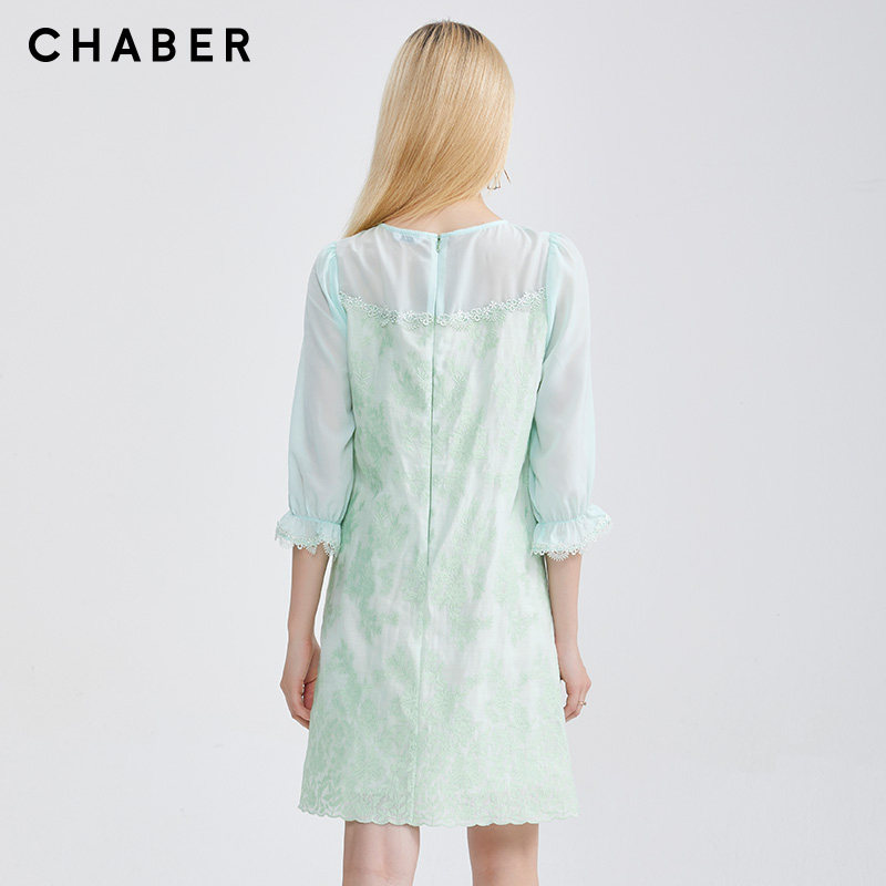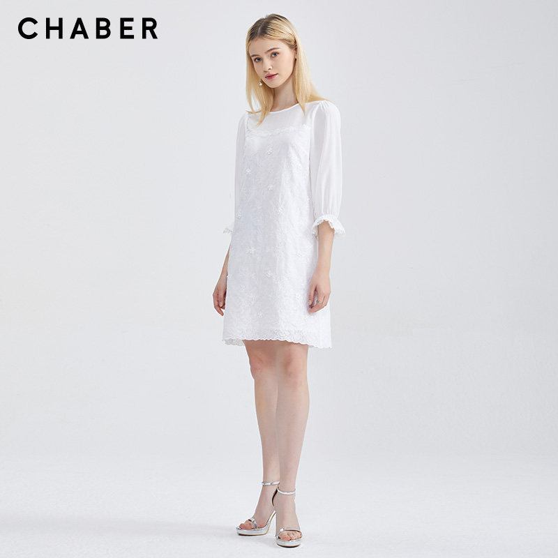 chaber/巧帛秋季新款休闲浪漫典雅重工刺绣钉花女士中款连衣裙