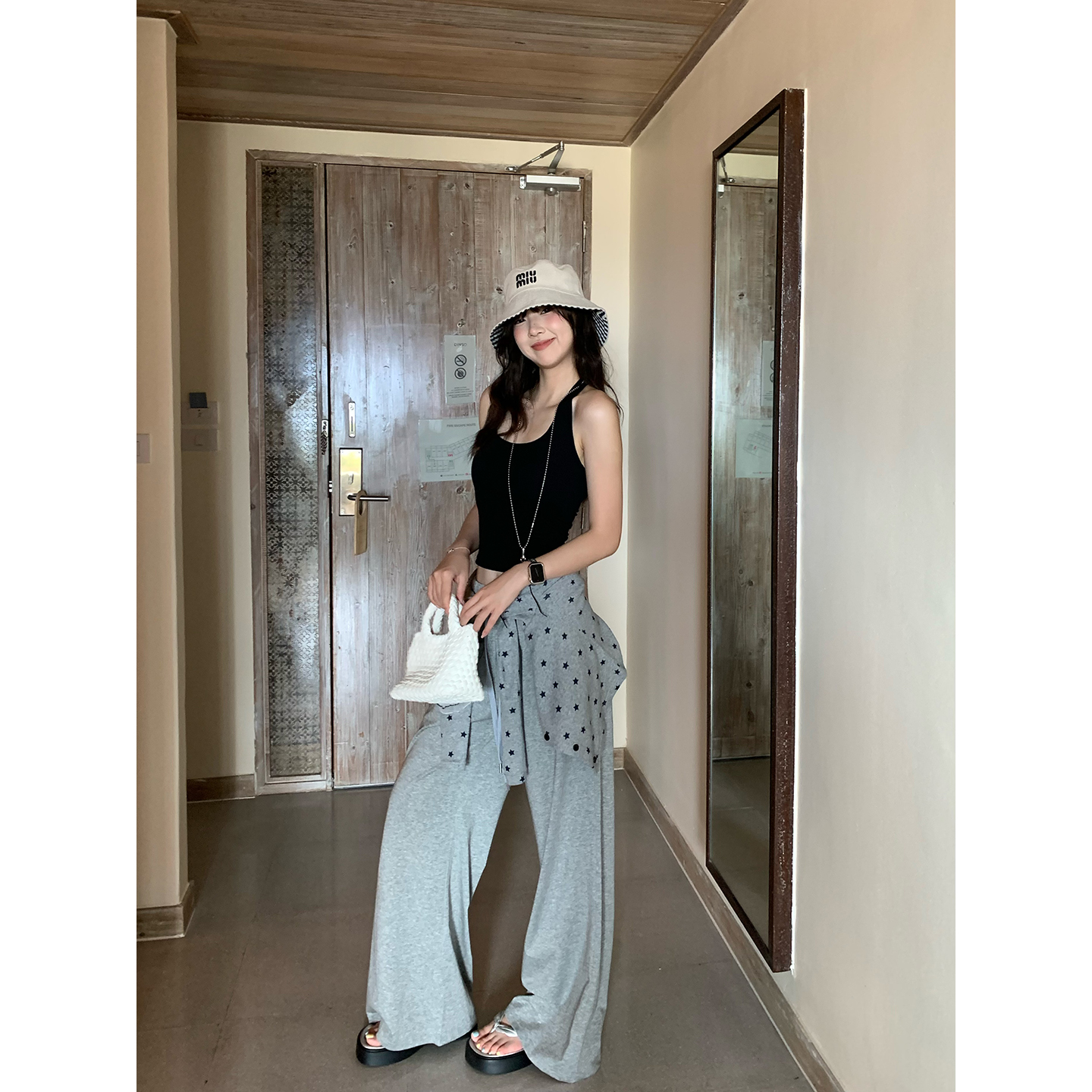 荒荒家抽绳休闲裤2025夏季新款韩版灰色宽松运动垂感拖地阔腿裤女