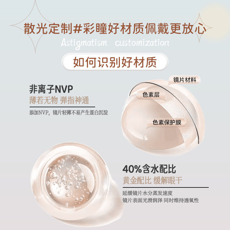 【散光定制】艾爵散光隐形眼镜美瞳半年抛1片溢彩高度彩色订制片
