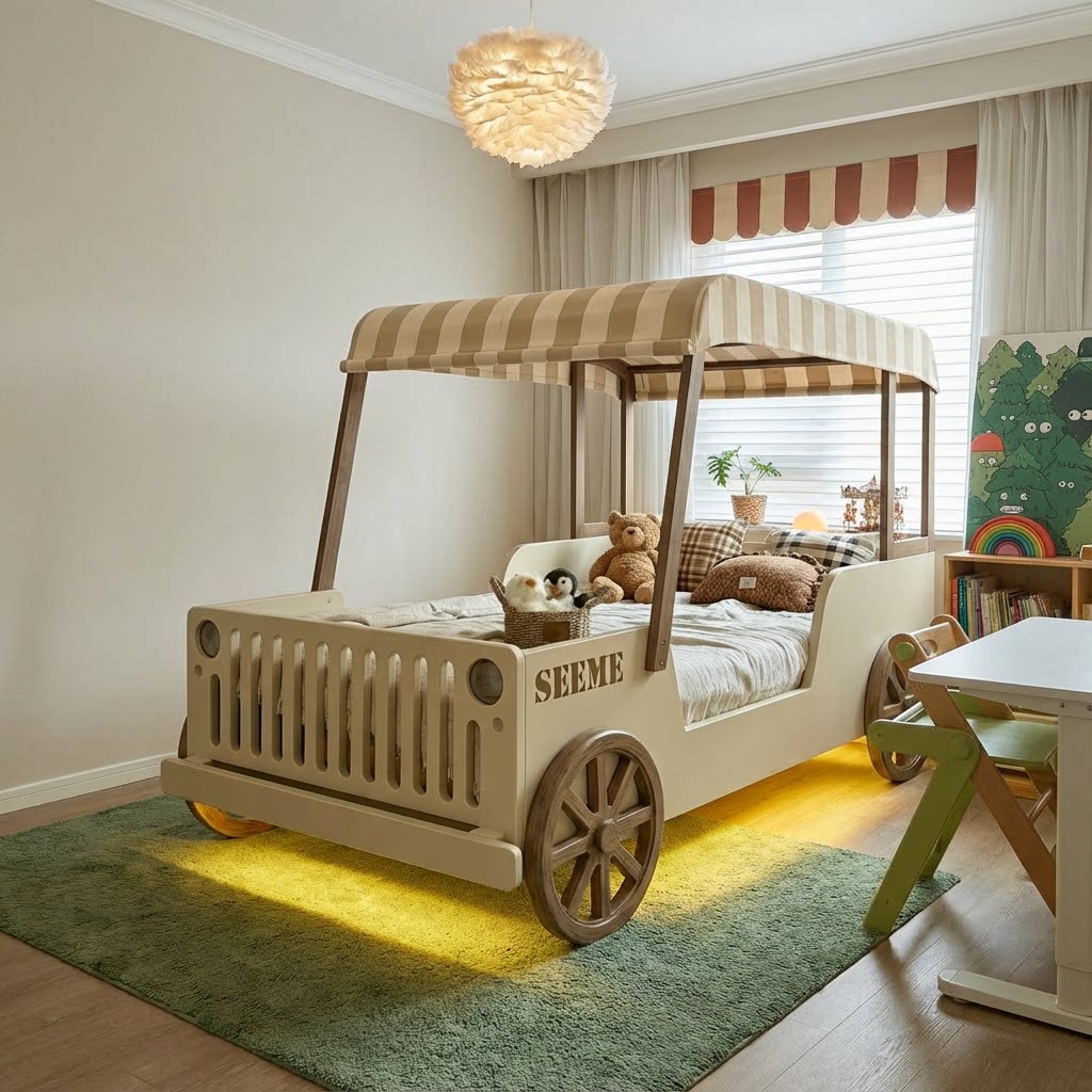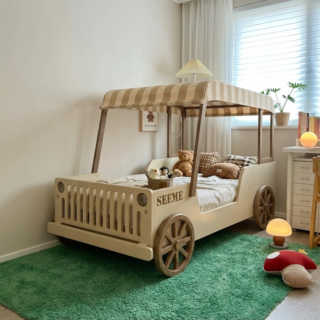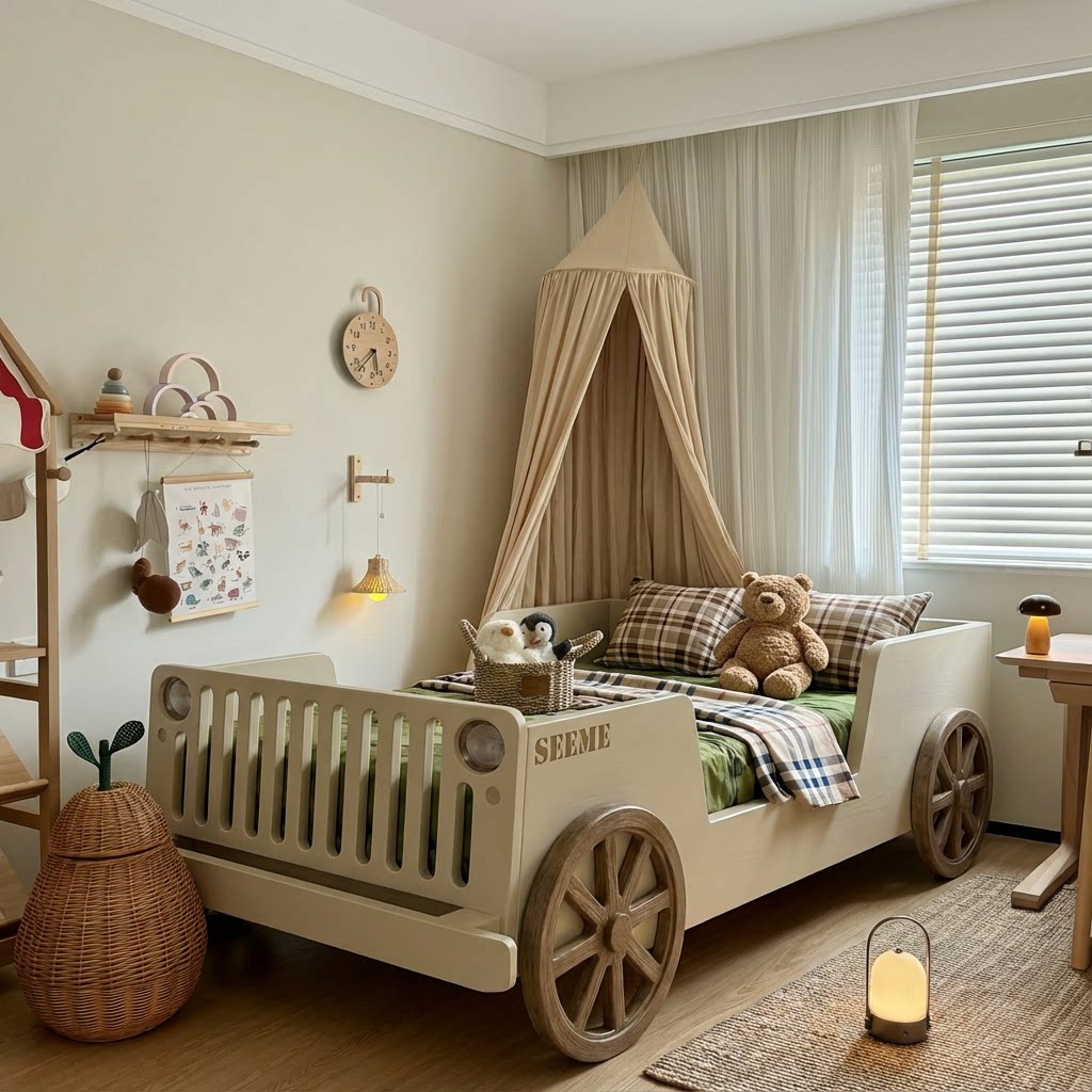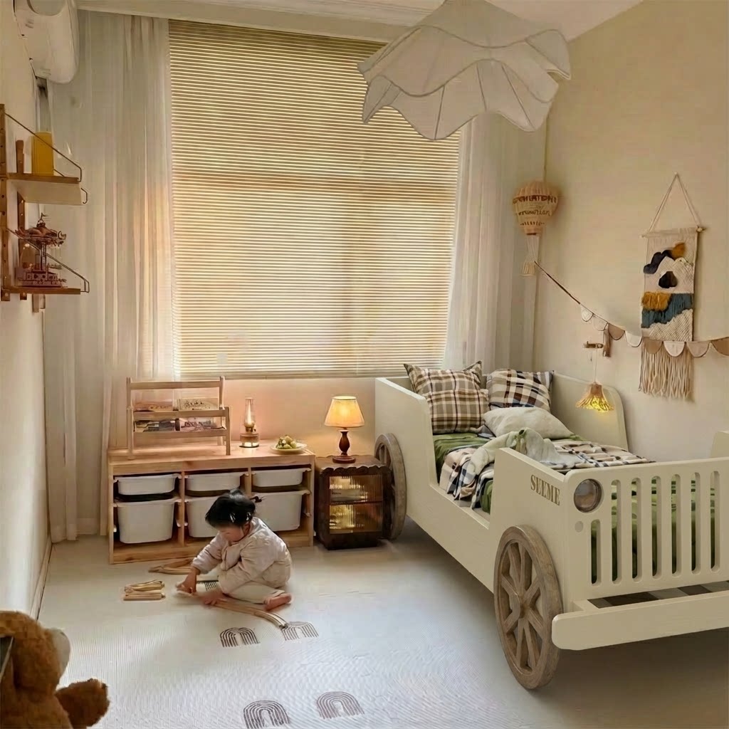 喜力美全实木半高床小户型汽车床男孩女孩单人卧室床护栏房子床