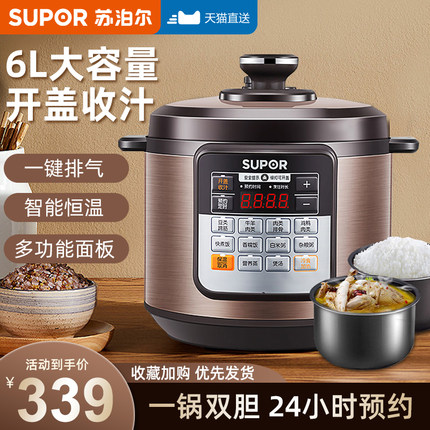 苏泊尔电压力锅6L大容量家用智能全自动电高压锅双胆饭煲官方正品