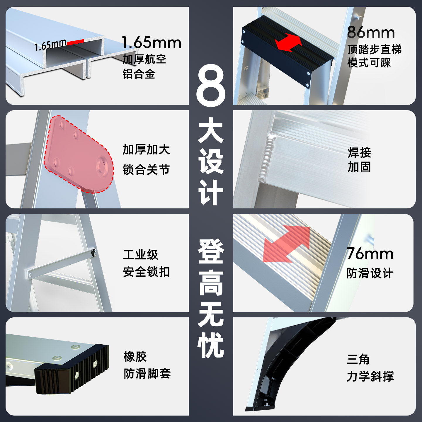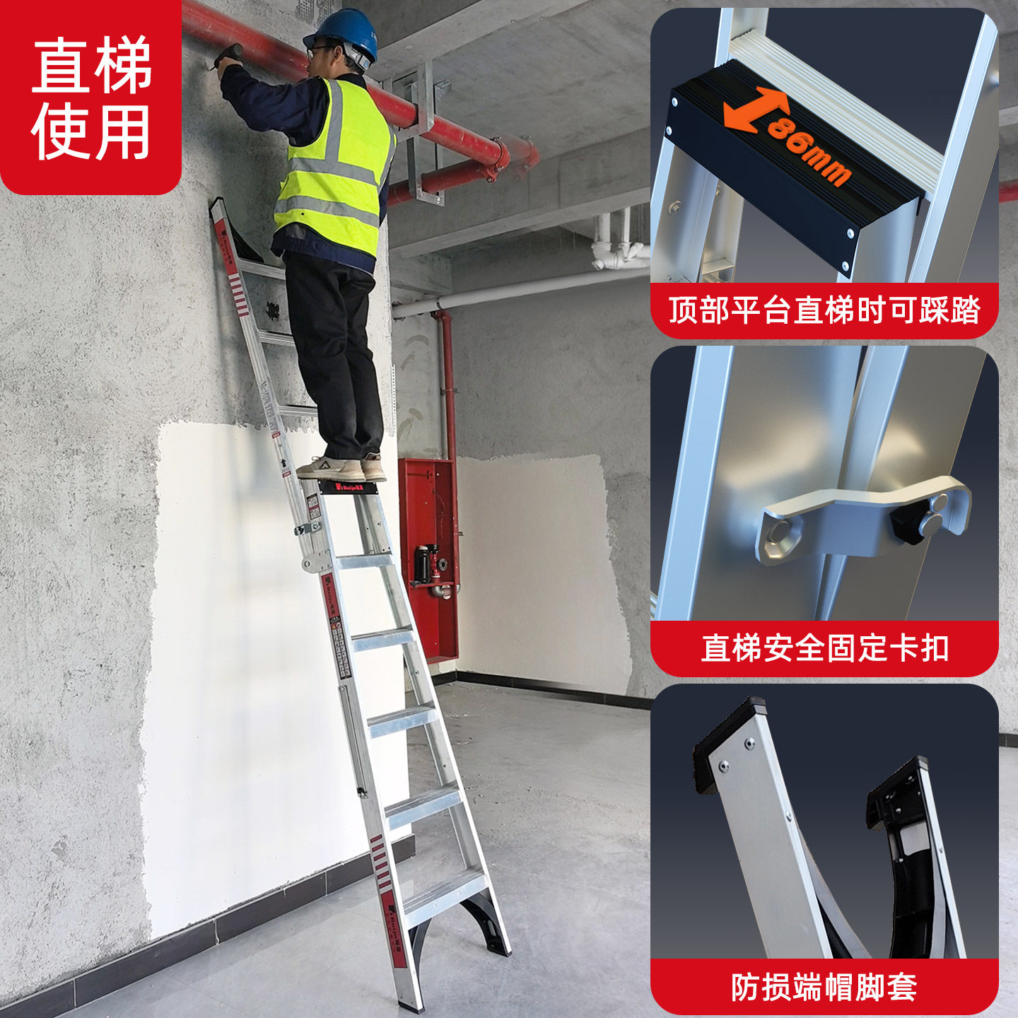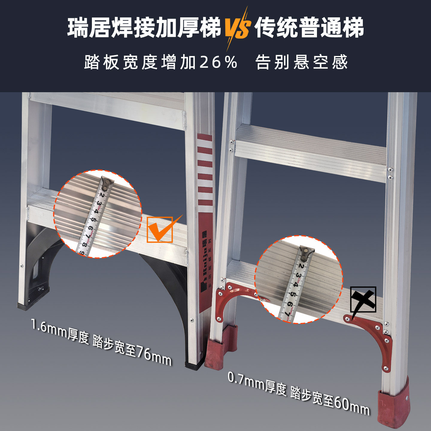 瑞居铝合金人字梯子折叠一字直梯家用加厚轻便工程梯多功能爬楼梯