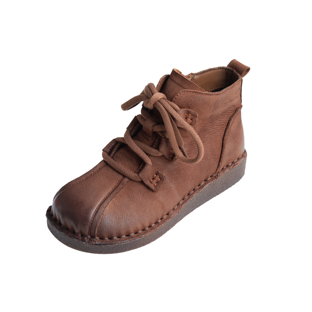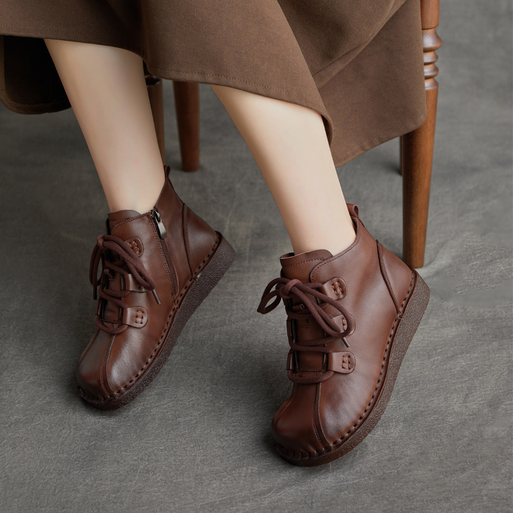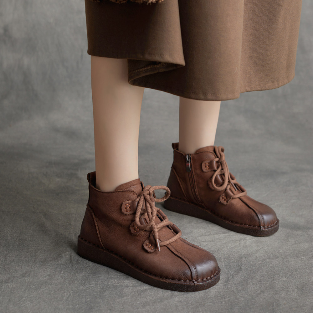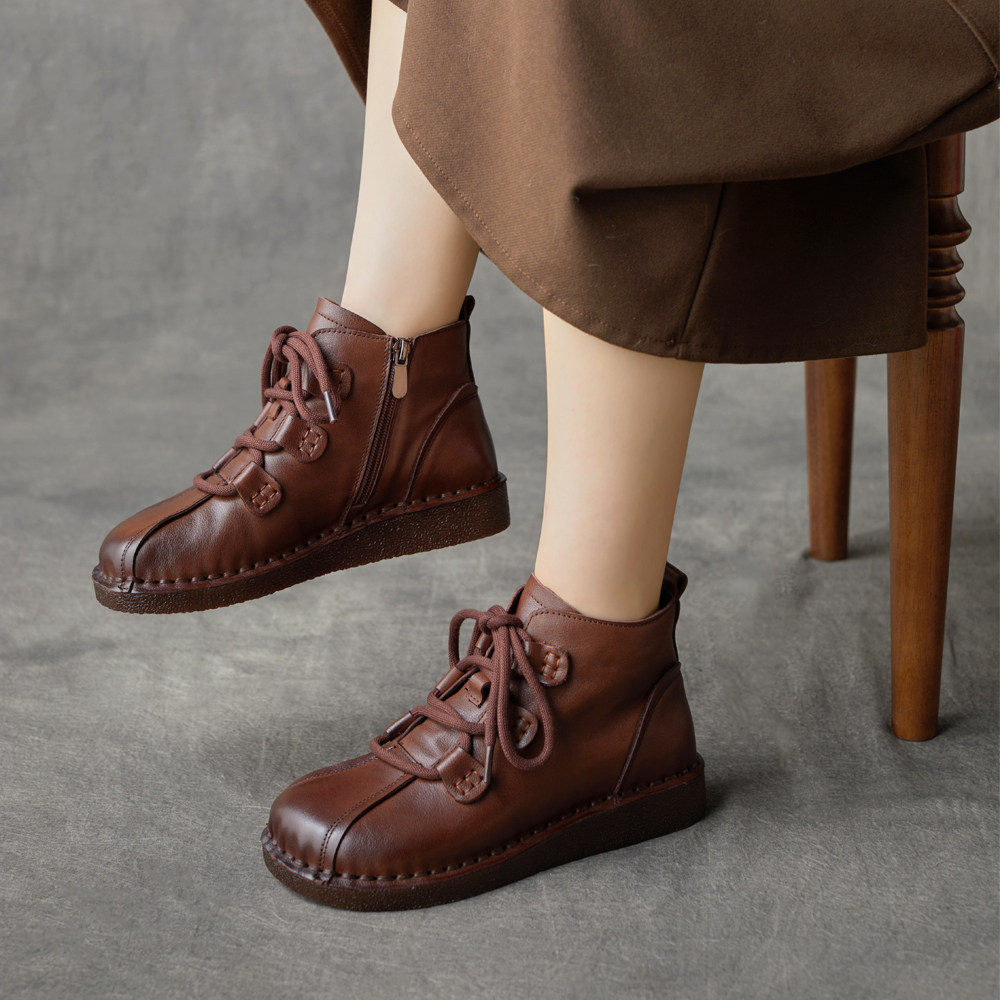 复古拉链短靴女2025秋冬新款软底马丁靴手工真皮高帮鞋系带时装靴