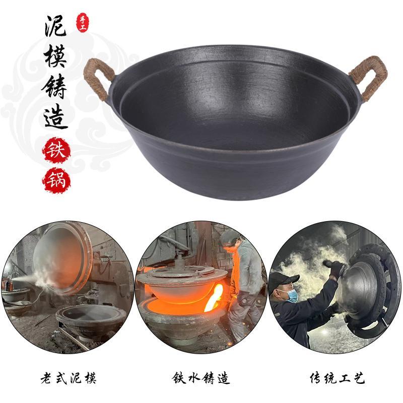 章丘铁锅老式铸铁锅双耳炒锅生铁无涂层炒菜锅不粘锅家用燃气灶专