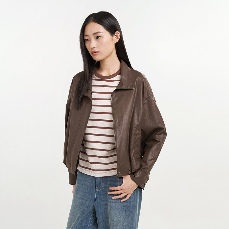 [专柜同款]Yifini/易菲100%纯棉时尚百搭通勤外套短款上衣女25冬