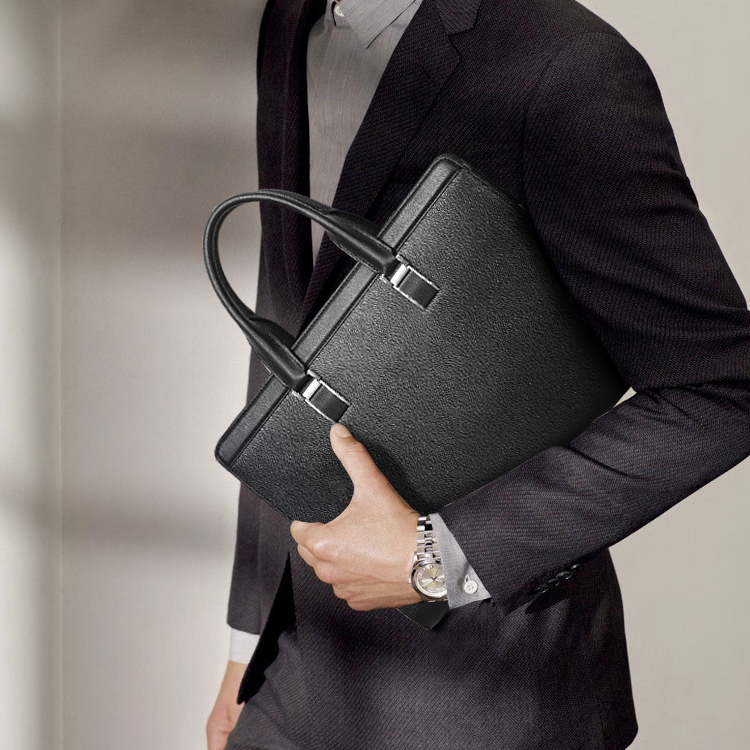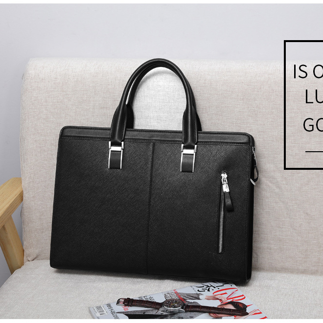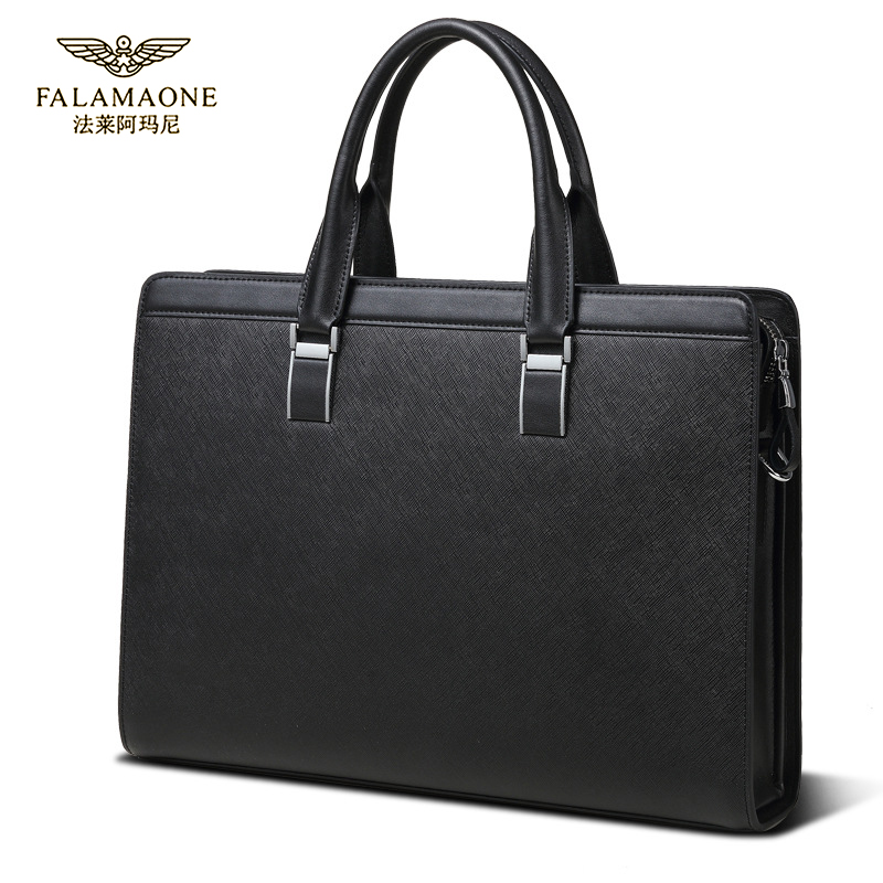 正品法莱阿玛尼公文包男士真皮横款十字纹牛皮高端商务电脑手提包