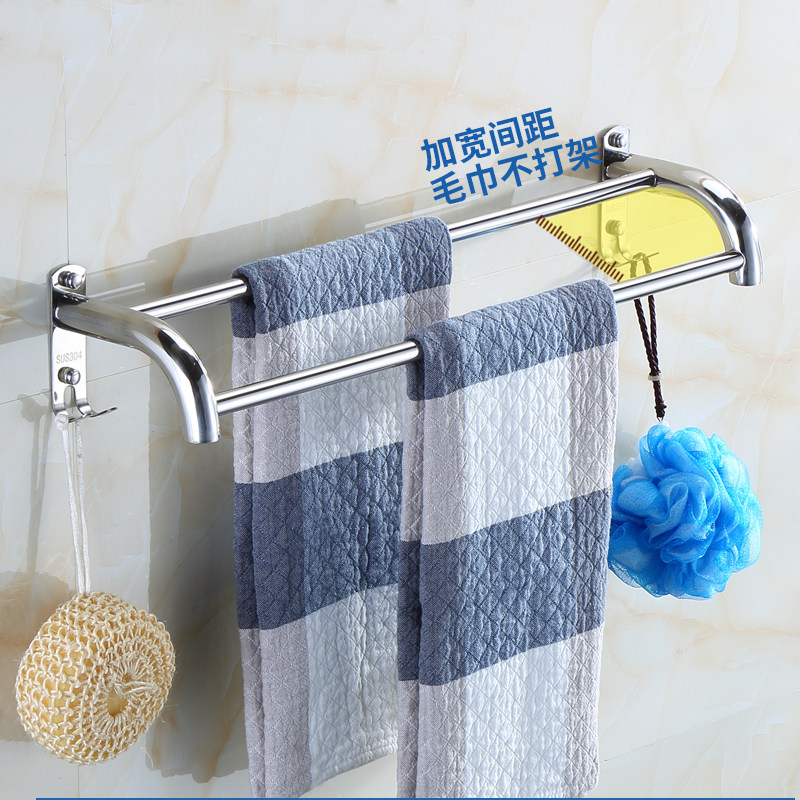 毛巾杆单杆双杆304不锈钢浴室挂钩厕所卫生间挂毛巾的架子免打孔