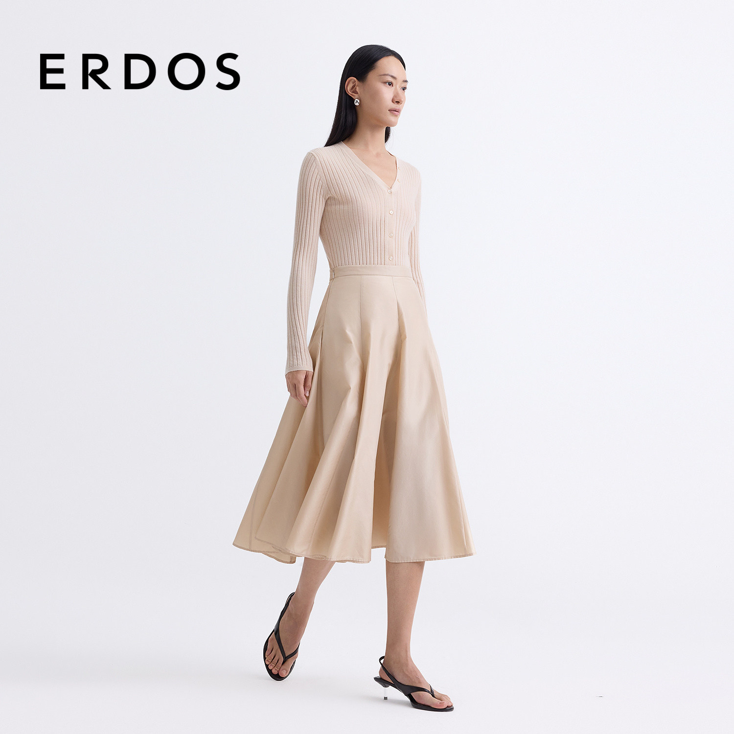 【秀场同款】ERDOS 刘雯同款真丝A字塔夫绸半身裙