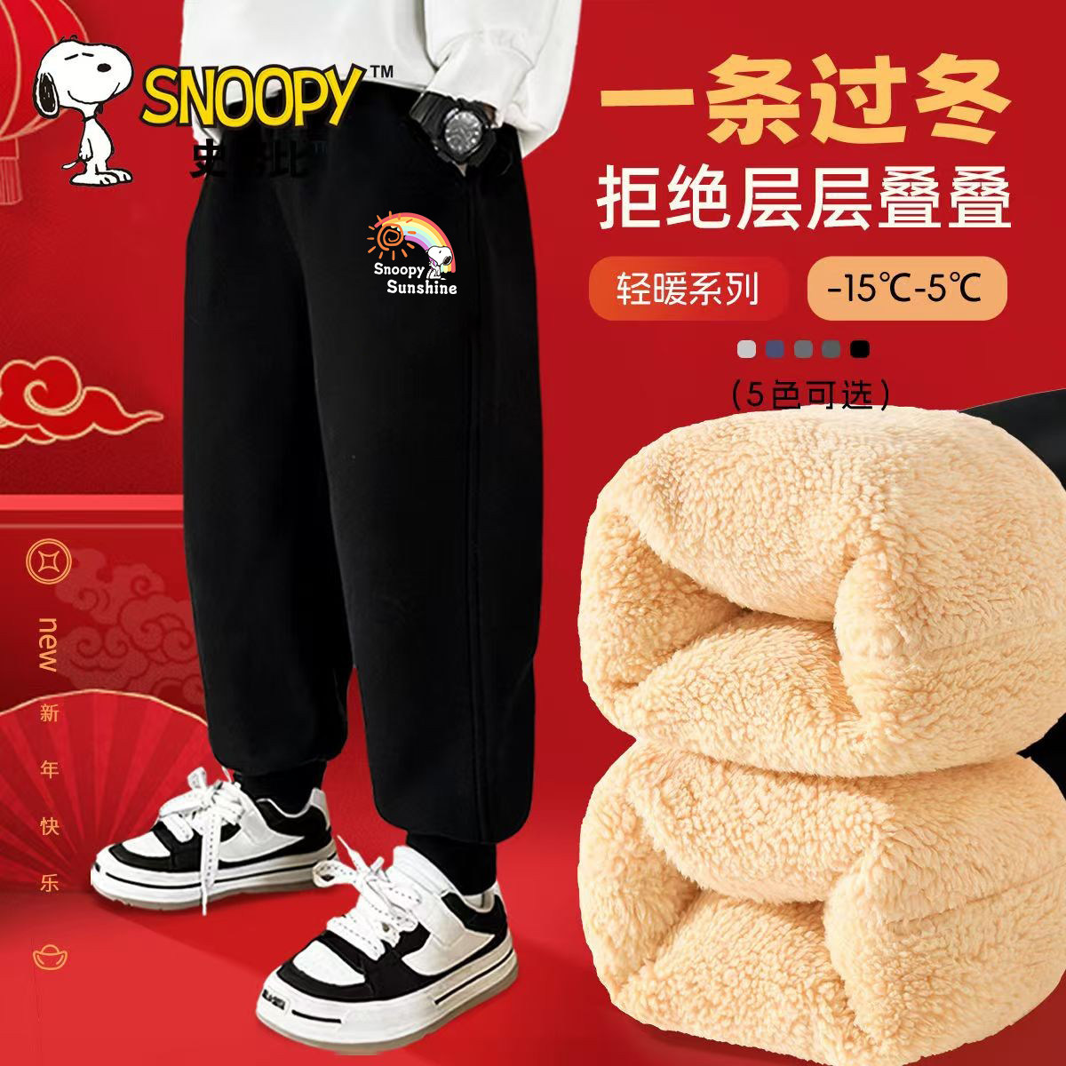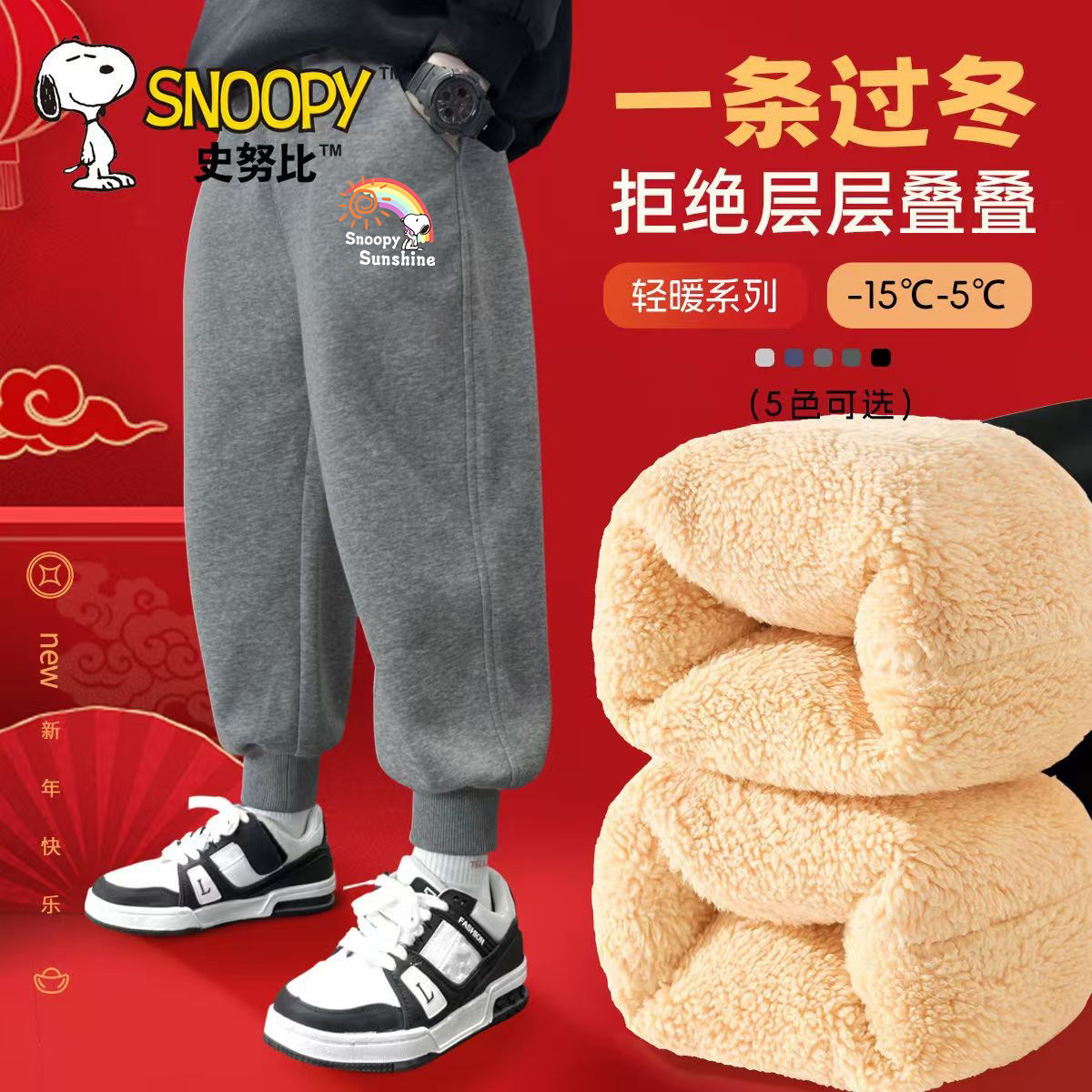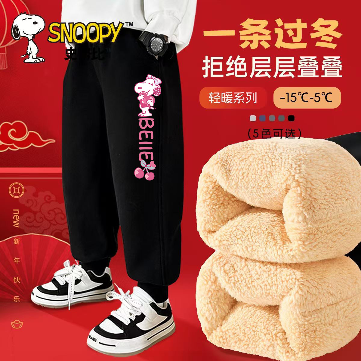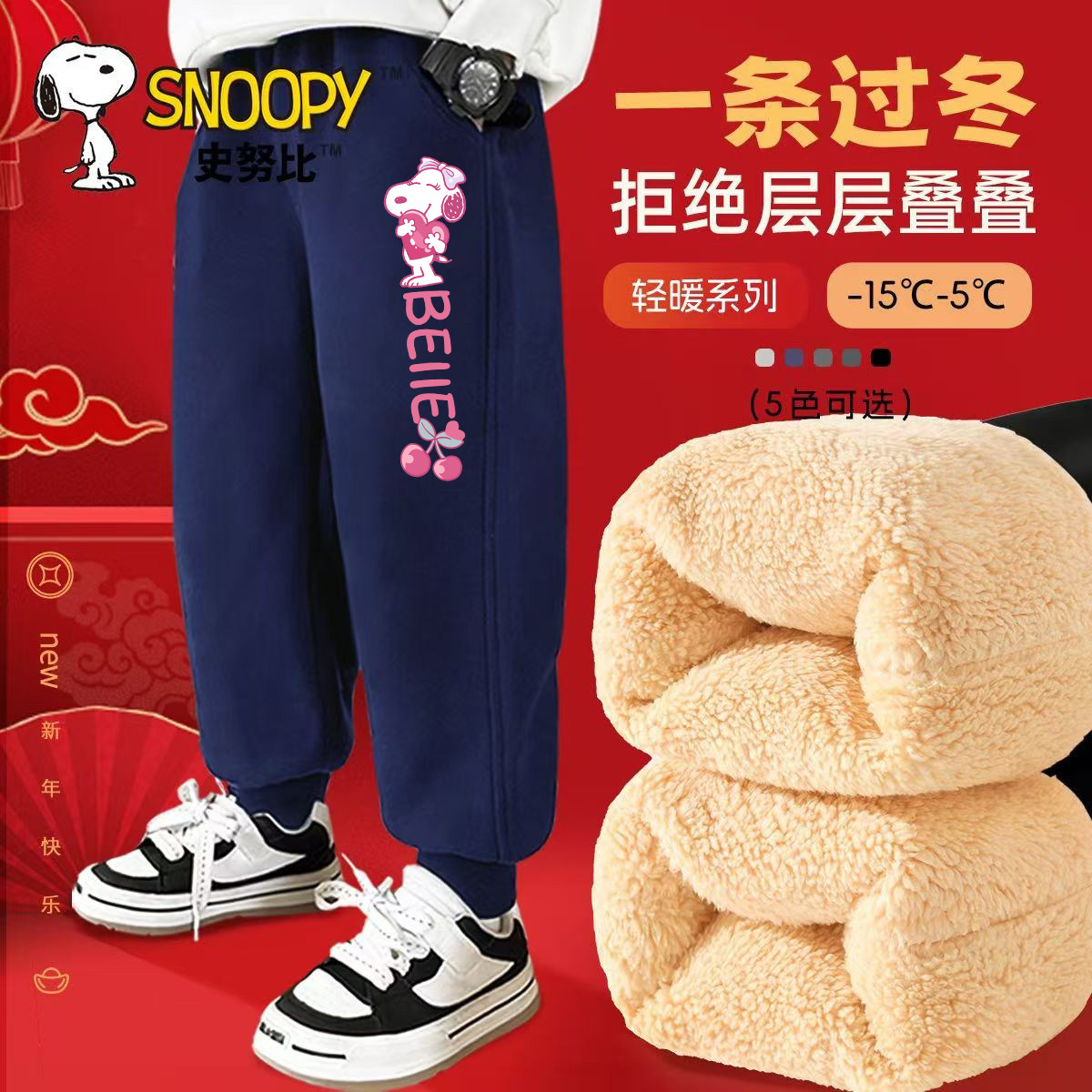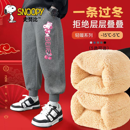 史努比女童一体绒新年保暖休闲运动裤女孩冬装加绒卫裤羊羔绒裤子