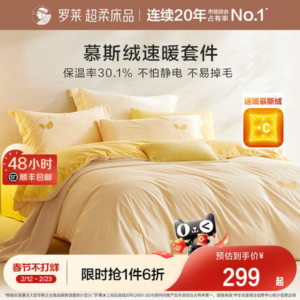 罗莱家纺慕斯绒四件套冬季加厚法兰绒套件牛奶绒珊瑚绒床单被套