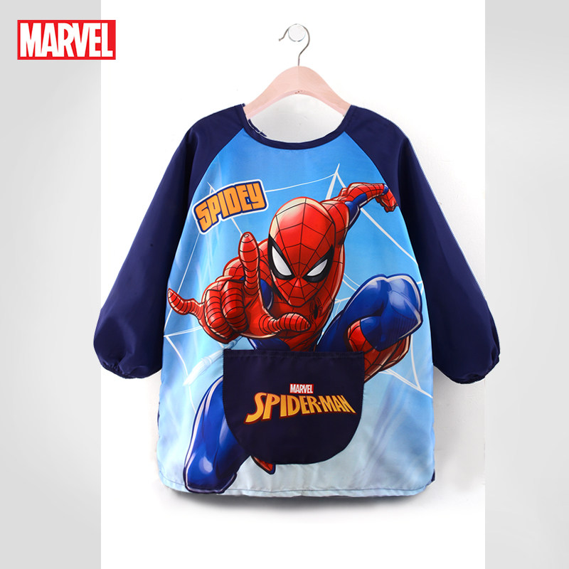 迪士尼儿童罩衣男童画画衣秋冬季防水防脏羽绒服护衣蜘蛛侠反穿衣