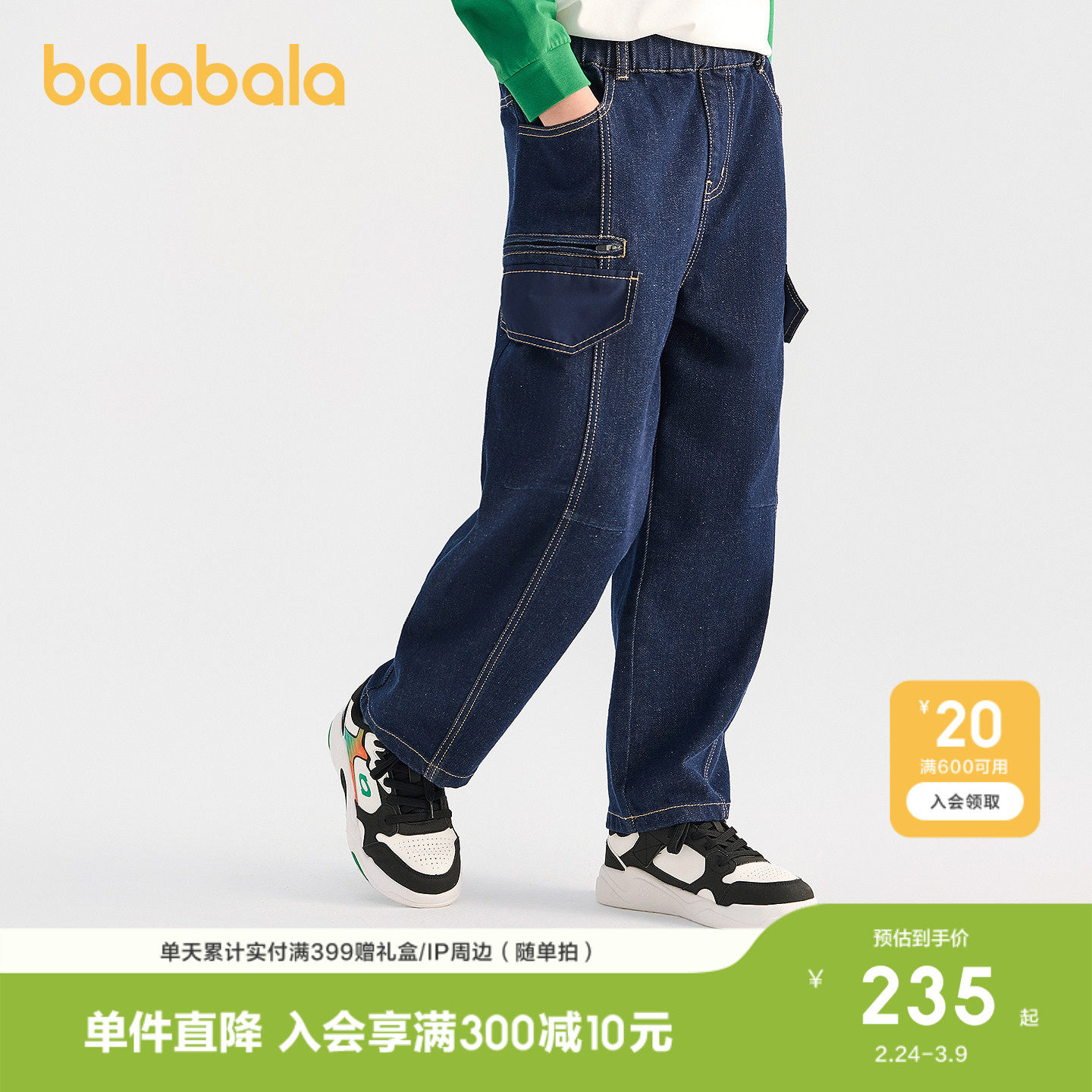 【商场同款】巴拉巴拉童装儿童裤子男童2026春新款牛仔长裤气球裤
