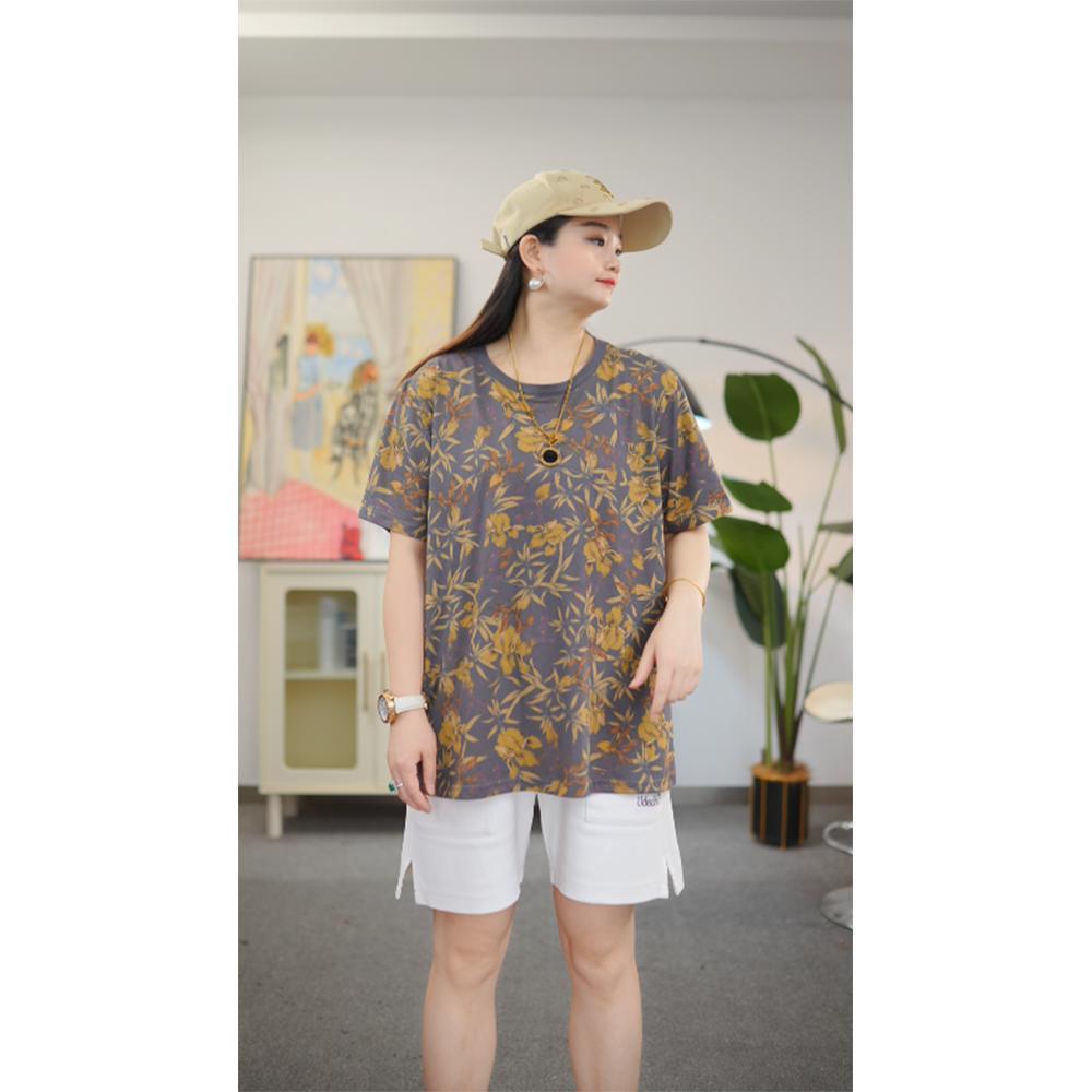 加大码女装夏季新款短袖t恤200斤胖mm宽松遮肉显瘦气质胖妈妈上衣