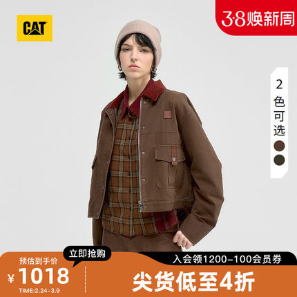 CAT卡特春季新品女士复古水洗工装贴袋灯芯绒翻领夹克商场同款