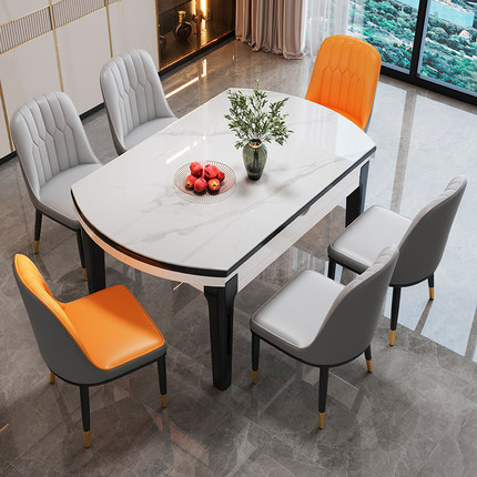 小户型实木岩板餐桌伸缩可变圆桌