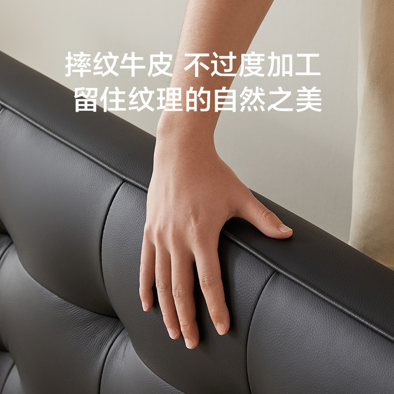 新品政府补贴实木框架极简全真皮床卧室高端大气双人床 黑白格