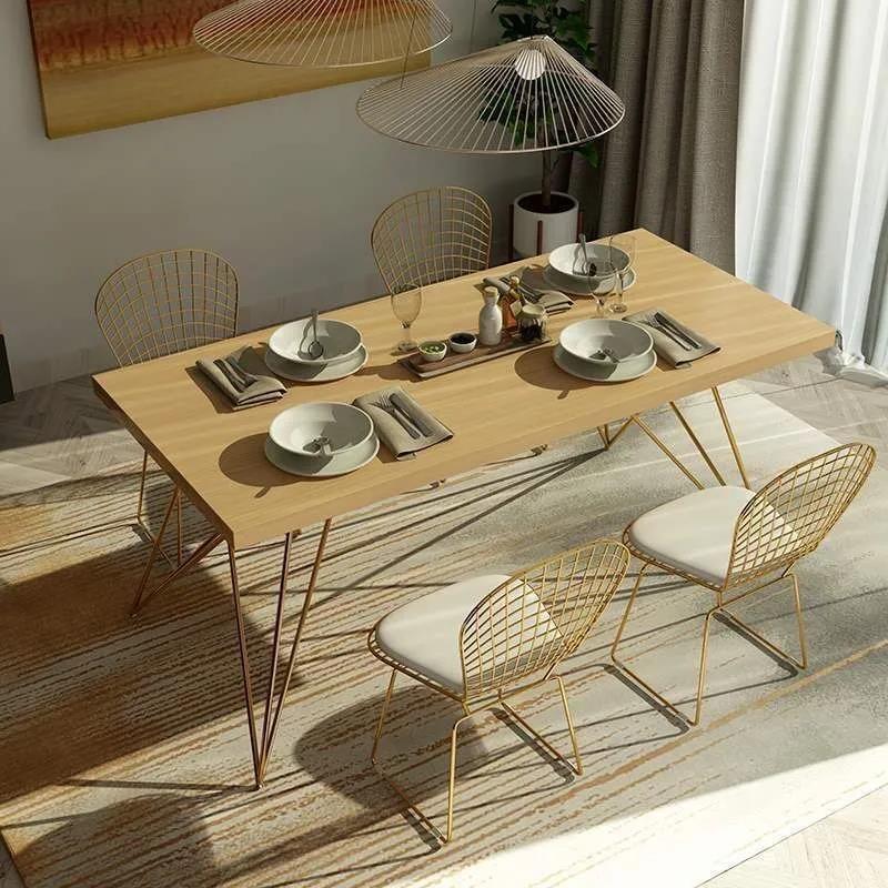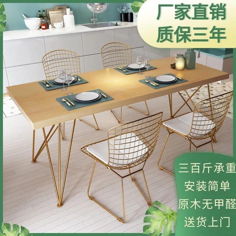 北欧现代简约餐桌家用服装店展示台桌子休闲铁艺实木整板桌椅组合