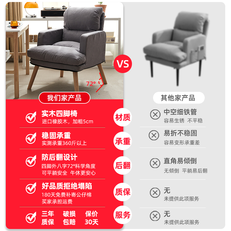 单人电脑沙发椅办公午睡两用躺椅电脑椅家用舒适懒人沙发休闲椅子