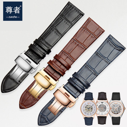 手表带男女真皮适配阿玛尼AR2502满天星AR11269情侣表牛皮22 14mm