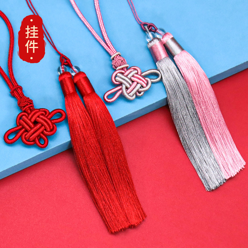 吉祥结双拼色流苏穗子手工编织车挂件吊穗冰丝垂直中国结挂饰配件