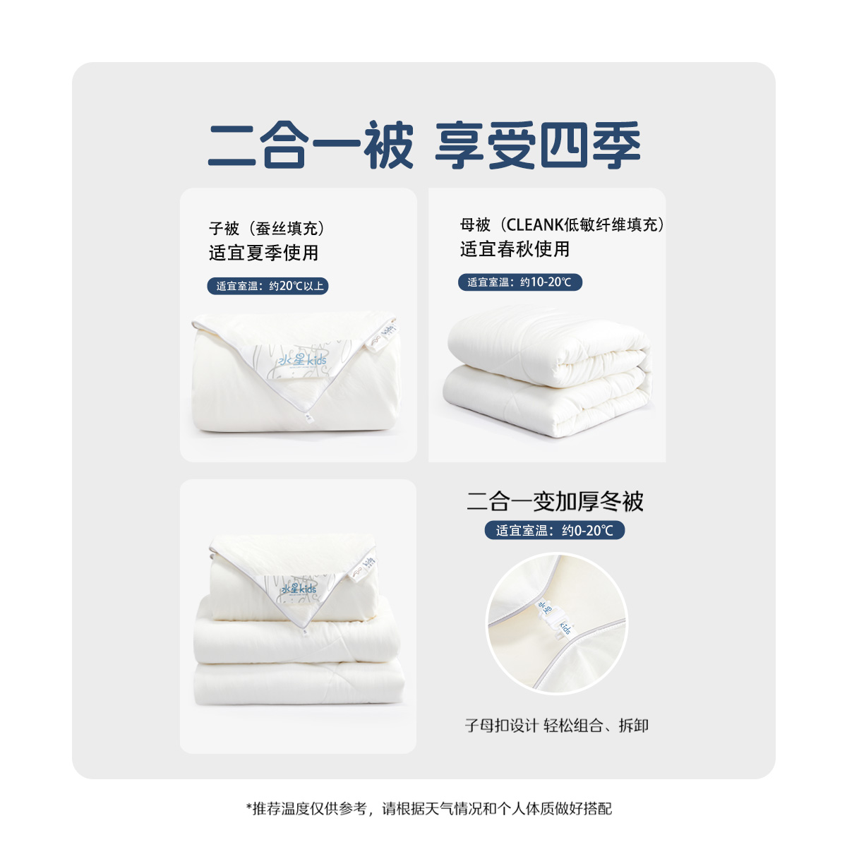 水星家纺蚕丝被低敏二合一被儿童母婴A类保暖抗菌子母被子被芯