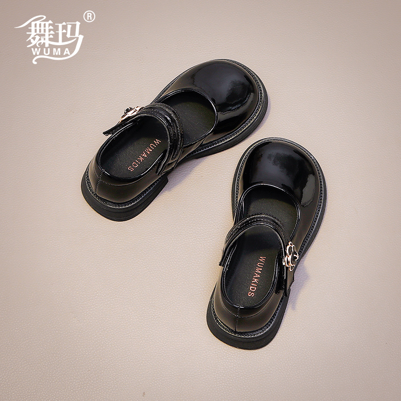 舞玛女童鞋子儿童真皮公主小皮鞋2025新款春夏季女孩亮面黑色单鞋