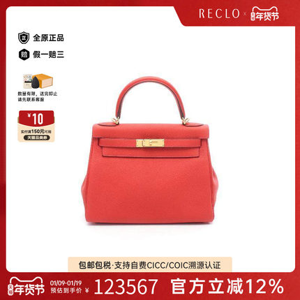 中古Hermes爱马仕女包A级95新Kelly28凯利28牛皮手提包红色
