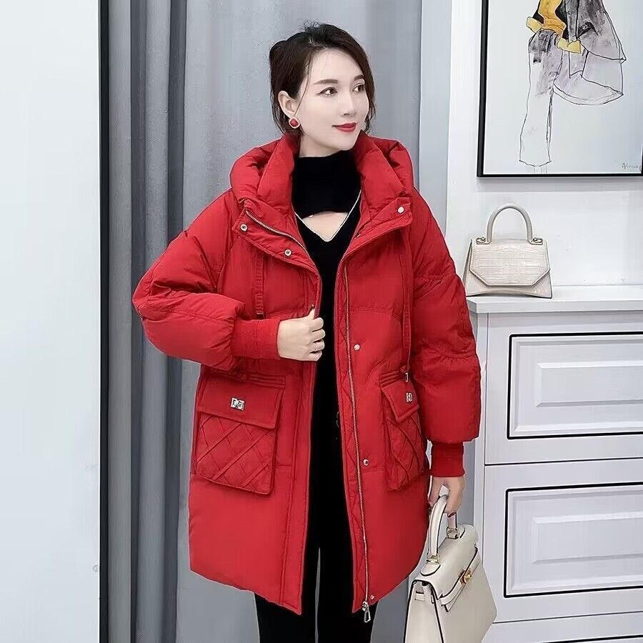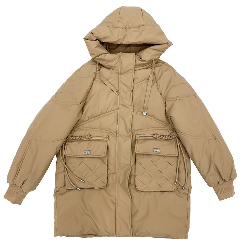 连帽新中长款韩版羽绒棉衣女冬装保暖加厚菠萝设计感防寒服袄外套