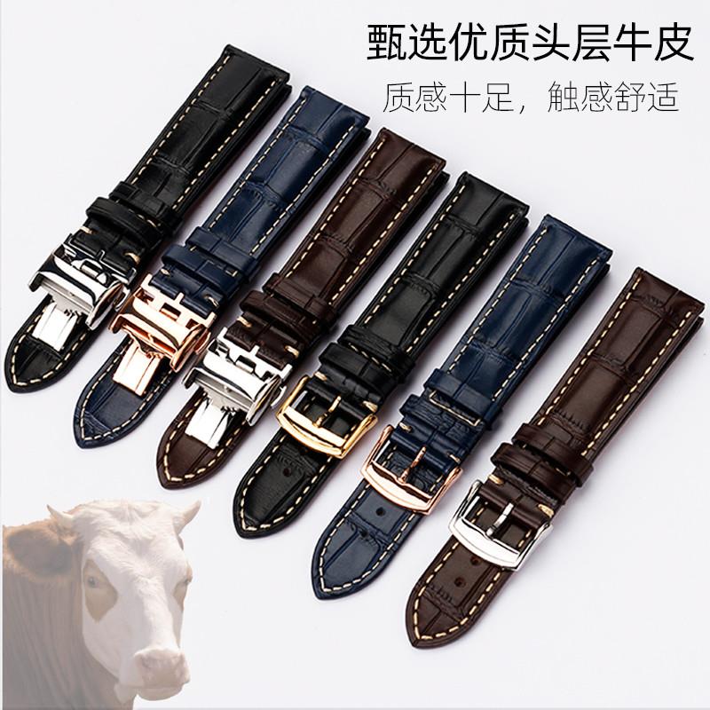 适用浪琴表带L2名匠军旗月相康卡斯瑰丽鳄纹真皮蝴蝶扣男Y表链21m