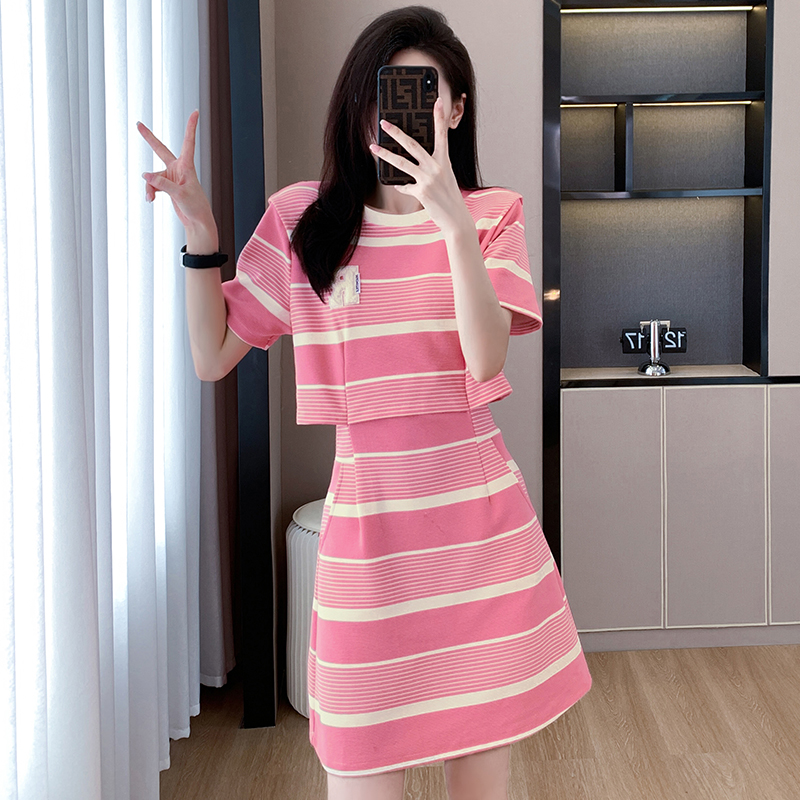 夏季外出哺乳衣假两件连衣裙时尚显瘦条纹哺乳裙产后期嫩妈喂奶衣