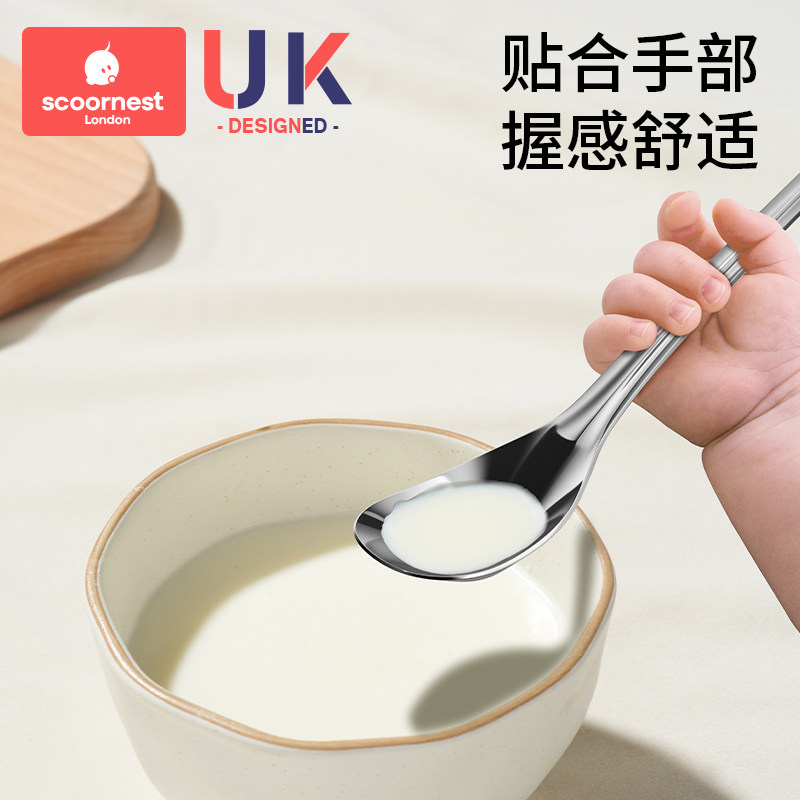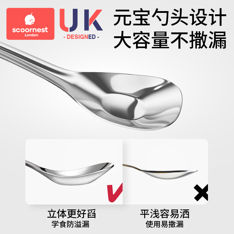 科巢元宝勺子316L不锈钢儿童宝宝喂饭勺子餐勺长柄汤勺调羹汤匙