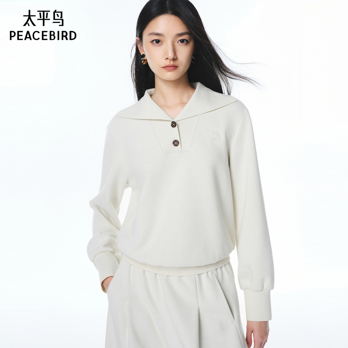 【商场同款】太平鸟25秋新款大翻领套头卫衣弯刀裤组合A1GBF3533