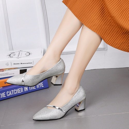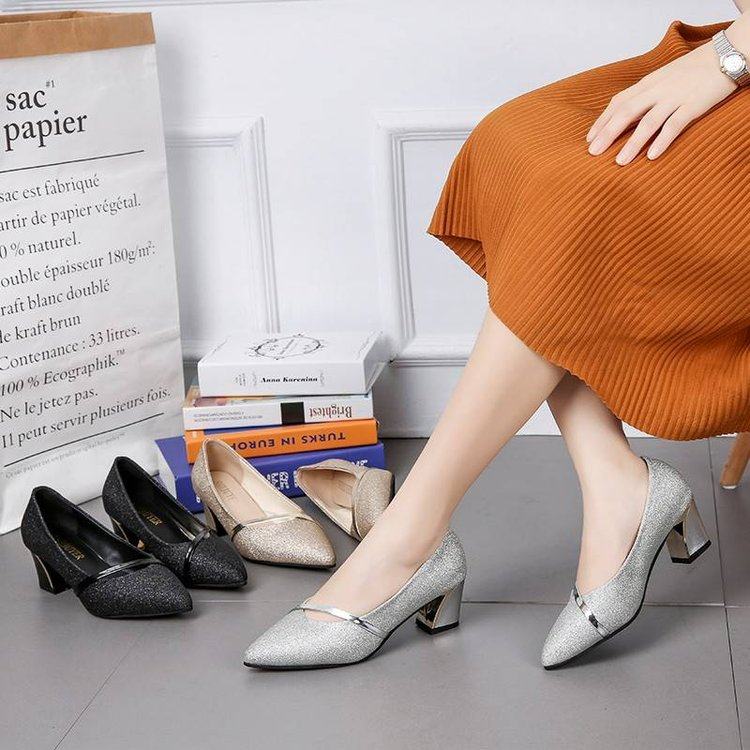 断码清仓正品一脚蹬四季单鞋女鞋瓢鞋百搭真皮韩版时尚粗跟中跟鞋