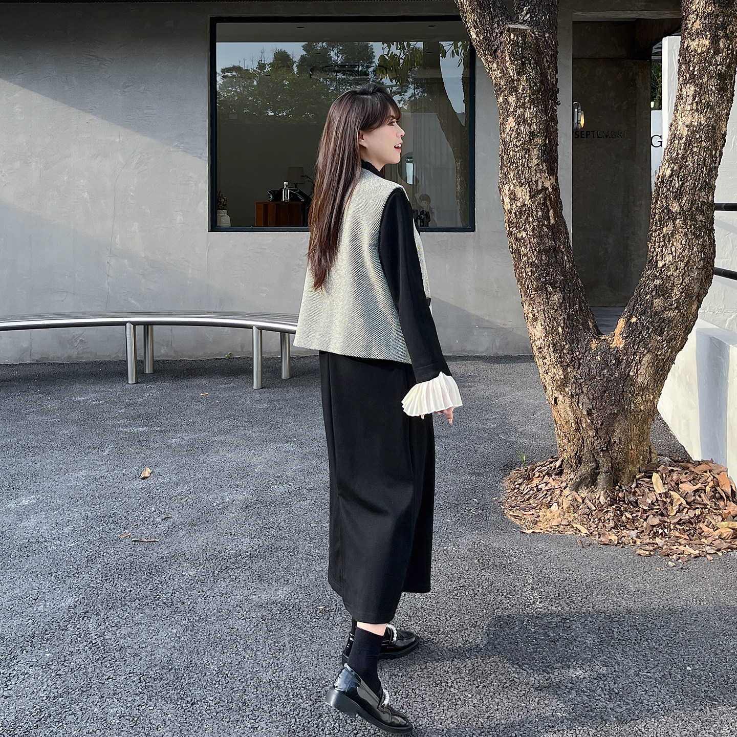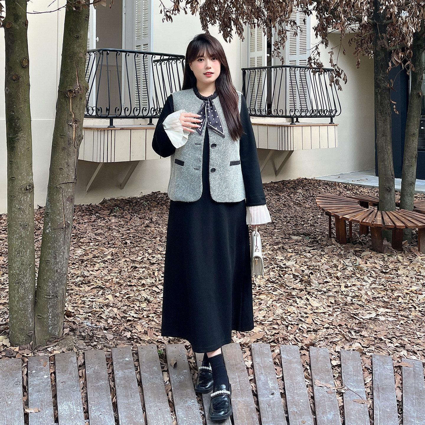 慕翎大码女装小香风马甲连衣裙套装女秋冬胖mm显瘦气质两件套